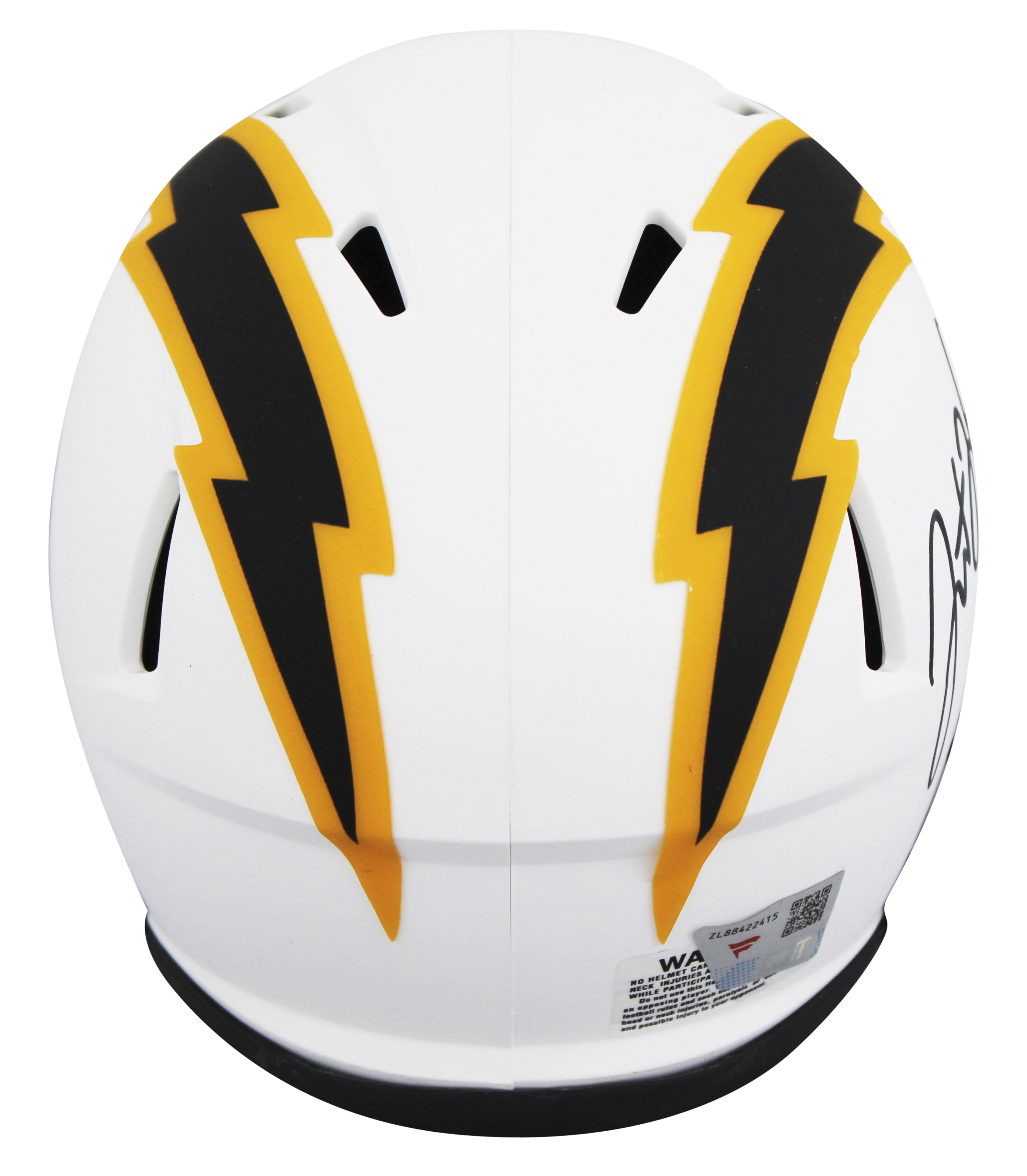 This Autographed Alternate Lunar Speed Mini Helmet has been Personally Signed by Justin Herbert of the Los Angeles Chargers. This item is 100% Authentic to includes a numbered hologram by Fanatics. We conducted an autograph signing with Justin Herbert where multiples of the same item were signed. While the photographs are representative of this item, the size, placement and strength of the signature may vary. Each item is hand signed, therefore, each autograph is unique. This item can be verified through Fanatics.