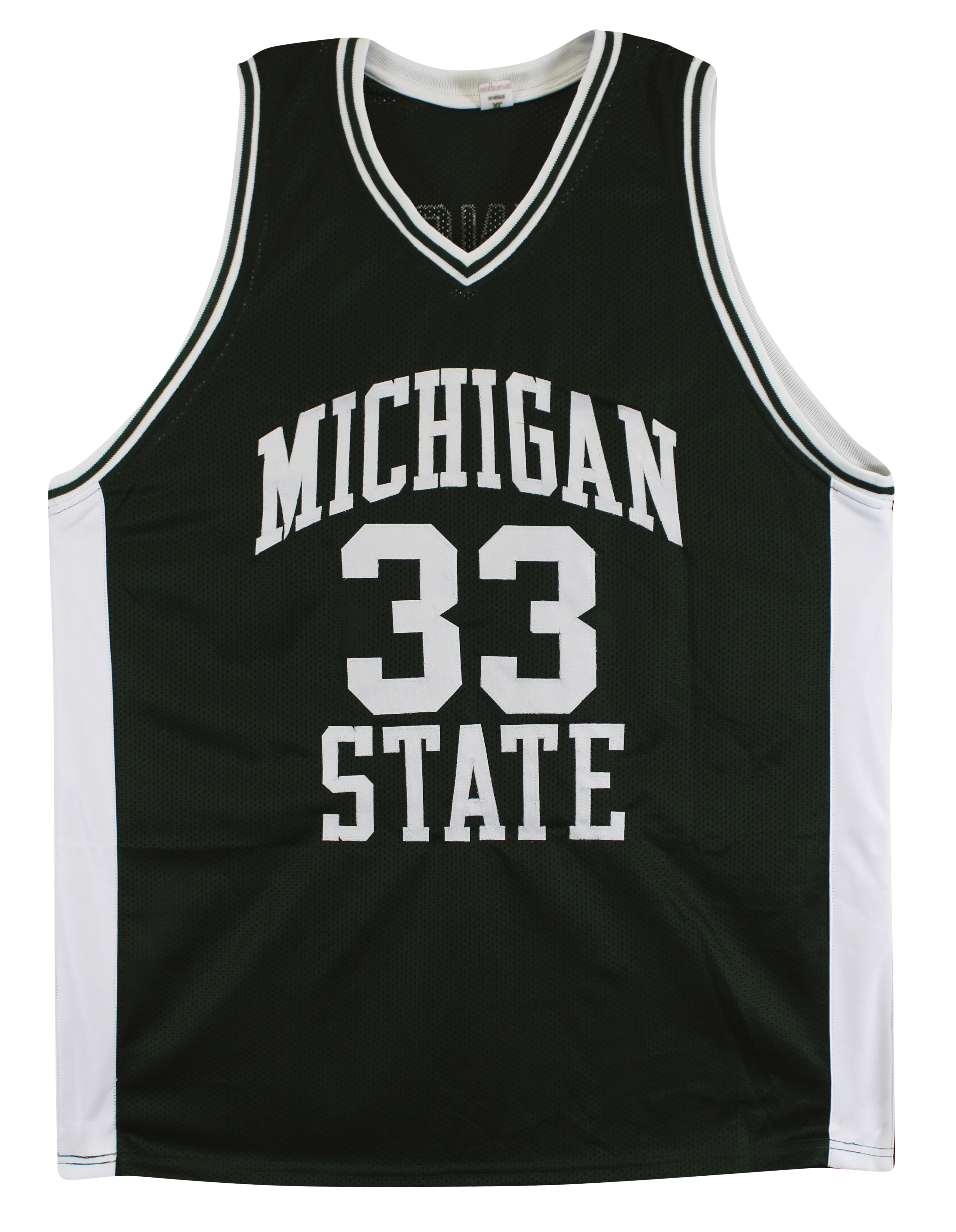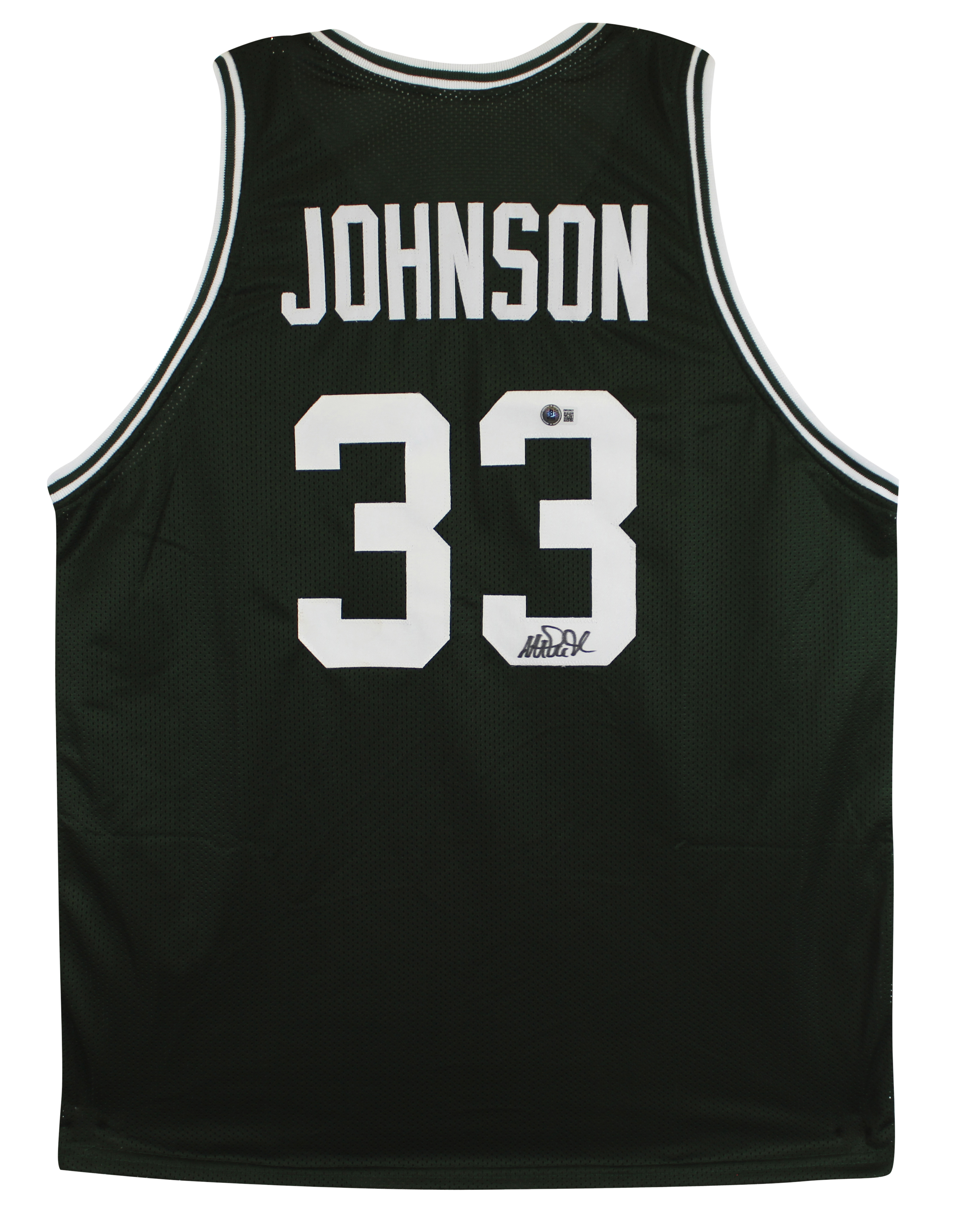 This Autographed Green Pro Style Jersey has been Personally Signed by Magic Johnson of the Michigan State Spartans. This item is 100% Authentic to include a hologram by Beckett Authentication Services. This item will come with an affixed Beckett Authentication Services (BAS) authentication sticker, which includes a scannable QR code to verify authenticity. Please note that Beckett no longer provides serial-numbered COA cards, and the attached BAS sticker will serve as the complete authentication for this item. This is a BAS Witnessed Protection Program item which means a Beckett Authentication Service representative was present when this item was being signed. We conducted an autograph signing with Magic Johnson where multiples of the same item were signed. While the photographs are representative of this item, the size, placement and strength of the signature may vary. Each item is hand signed, therefore, each autograph is unique. This item can be verified through BAS Witnessed. This is a X-Large sized, non-branded, custom-stitched Jersey.