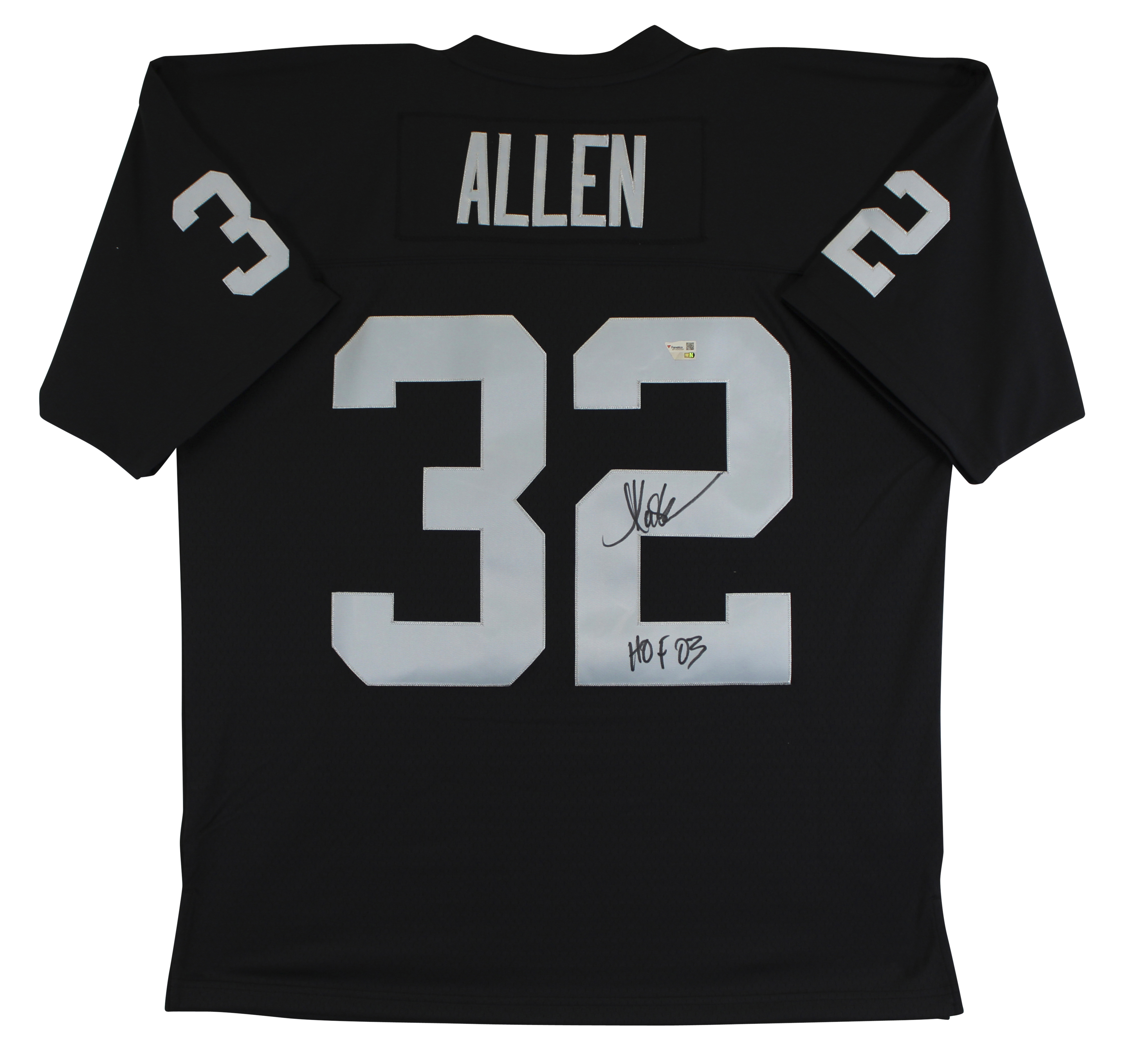This Autographed Black Mitchell & Ness Jersey with the inscription of "HOF 03" has been Personally Signed by Marcus Allen of the Las Vegas Raiders. This item is 100% Authentic to includes a numbered hologram by Fanatics. We conducted an autograph signing with Marcus Allen where multiples of the same item were signed. While the photographs are representative of this item, the size, placement and strength of the signature may vary. Each item is hand signed, therefore, each autograph is unique. This item can be verified through Fanatics. This is a X-Large sized Jersey.