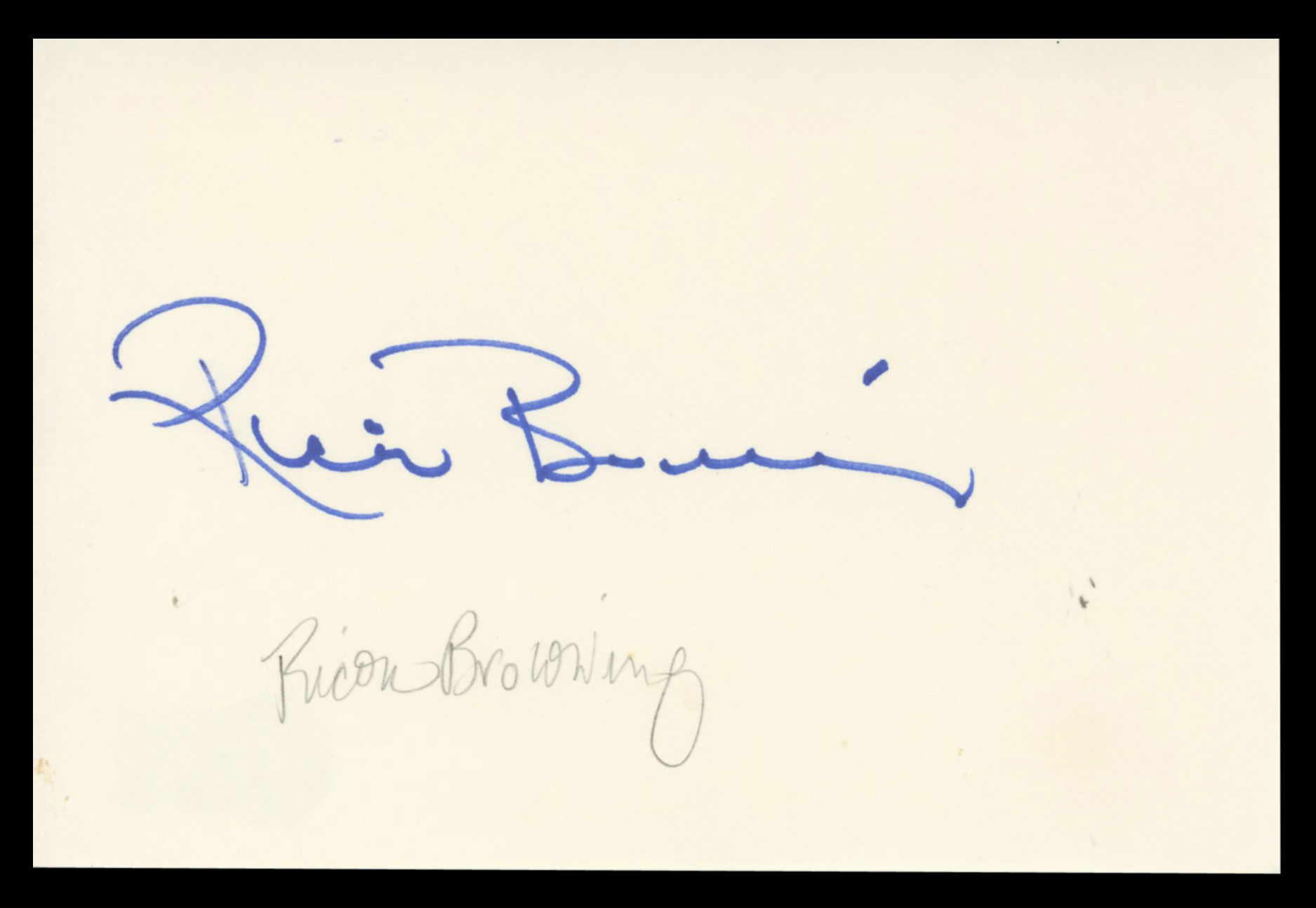 This Autographed 4x6 Index Card has been Personally Signed by Ricou Browning of Creature from the Black Lagoon. This item is 100% Authentic to include a hologram by Beckett Authentication Services. This item will come with an affixed Beckett Authentication Services (BAS) authentication sticker, which includes a scannable QR code to verify authenticity. Please note that Beckett no longer provides serial-numbered COA cards, and the attached BAS sticker will serve as the complete authentication for this item. The authenticity can be verified on Beckett Authentication Services website.