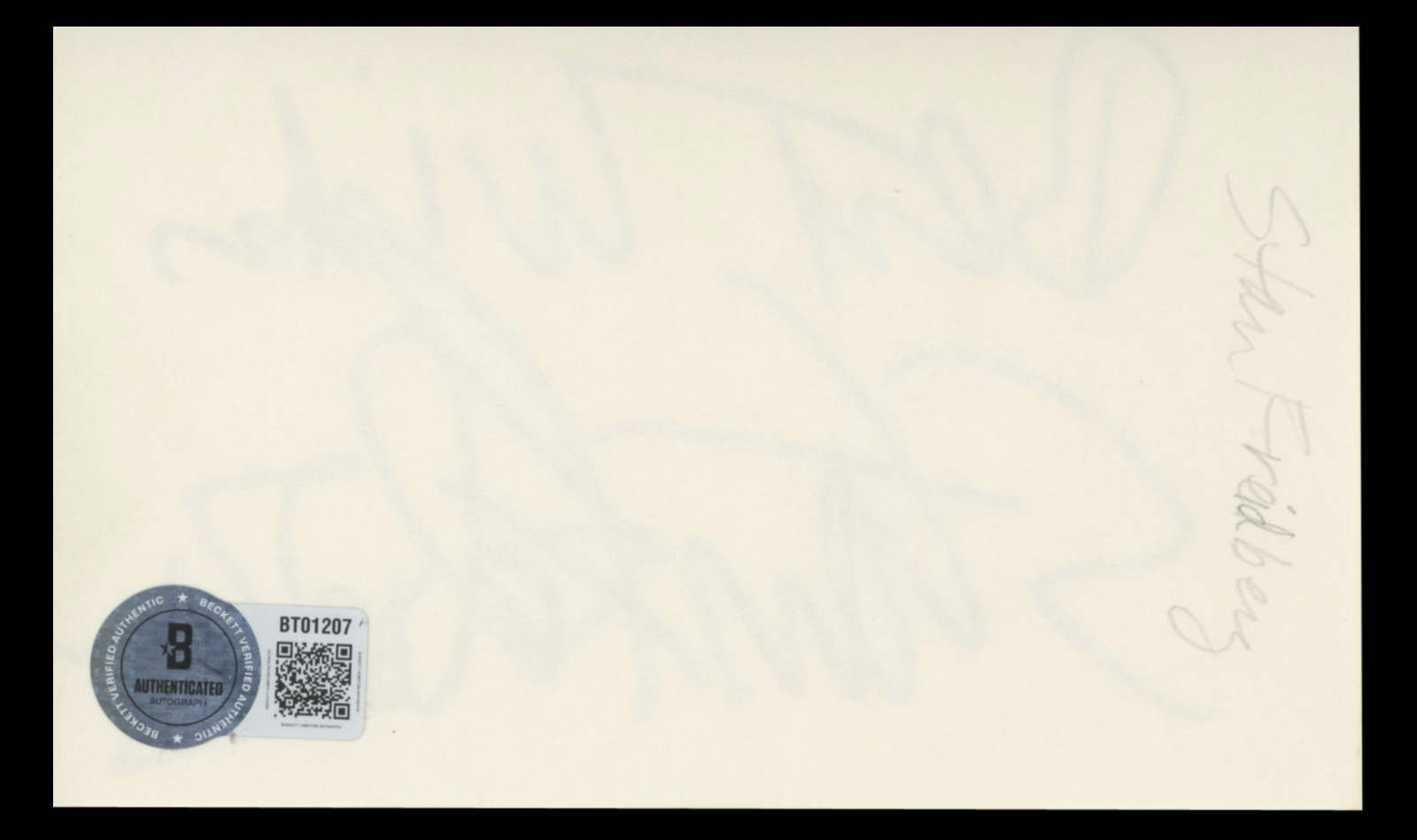 This Autographed 3x5 Index Card with the inscription of "Best Wishes" has been Personally Signed by Stan Freberg of Looney Tunes. This item is 100% Authentic to include a hologram by Beckett Authentication Services. This item will come with an affixed Beckett Authentication Services (BAS) authentication sticker, which includes a scannable QR code to verify authenticity. Please note that Beckett no longer provides serial-numbered COA cards, and the attached BAS sticker will serve as the complete authentication for this item. The authenticity can be verified on Beckett Authentication Services website.