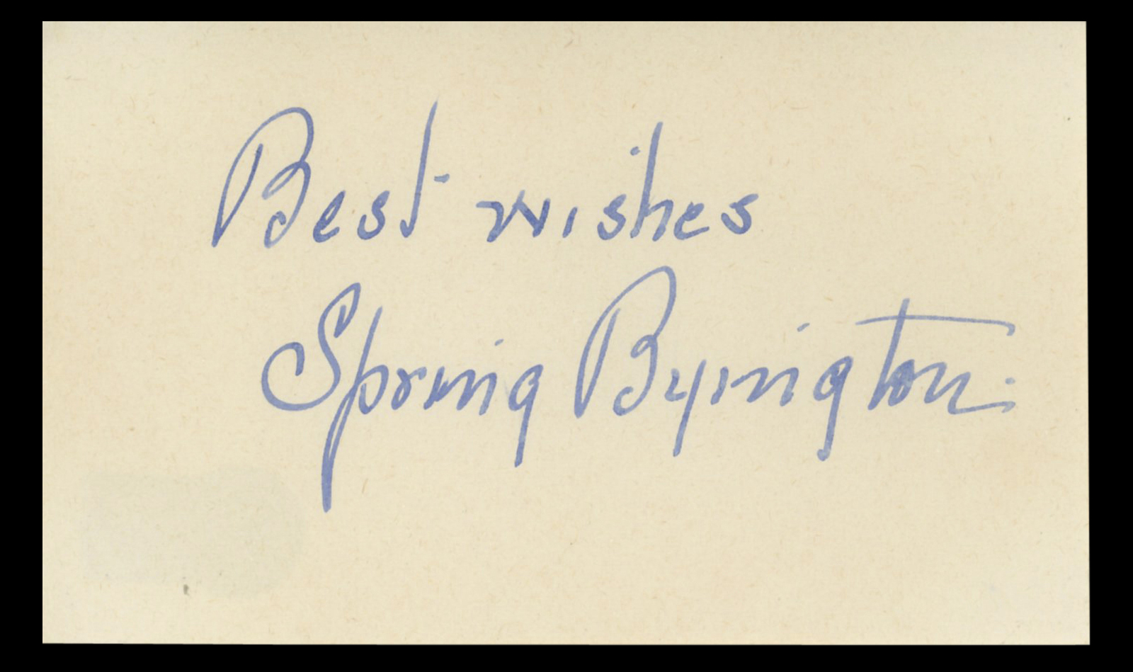 This Autographed 3x5 Index Card with the inscription of "Best Wishes" has been Personally Signed by Spring Byington of December Bride. This item is 100% Authentic to include a hologram by Beckett Authentication Services. This item will come with an affixed Beckett Authentication Services (BAS) authentication sticker, which includes a scannable QR code to verify authenticity. Please note that Beckett no longer provides serial-numbered COA cards, and the attached BAS sticker will serve as the complete authentication for this item. The authenticity can be verified on Beckett Authentication Services website.