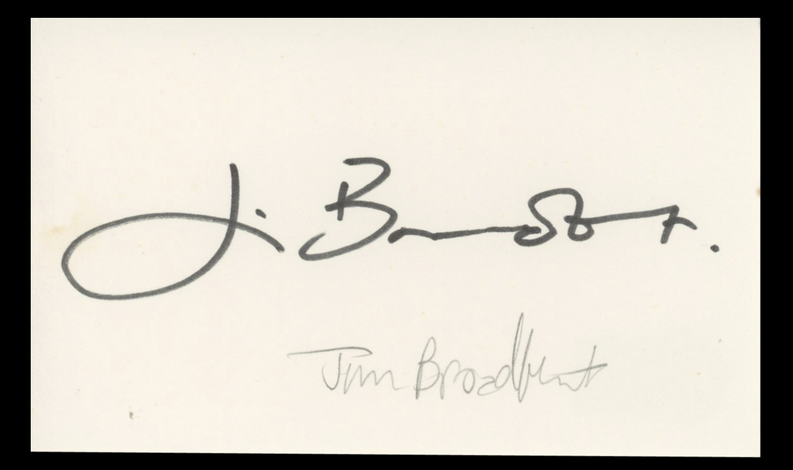 This Autographed 3x5 Index Card has been Personally Signed by Jim Broadbent of Life is Sweet. This item is 100% Authentic to include a hologram by Beckett Authentication Services. This item will come with an affixed Beckett Authentication Services (BAS) authentication sticker, which includes a scannable QR code to verify authenticity. Please note that Beckett no longer provides serial-numbered COA cards, and the attached BAS sticker will serve as the complete authentication for this item. The authenticity can be verified on Beckett Authentication Services website.
