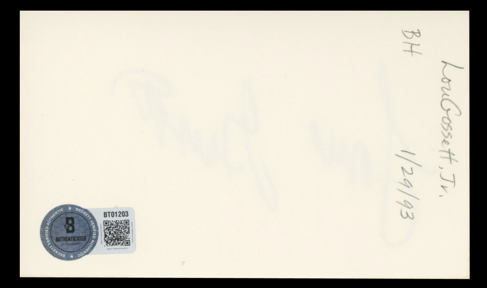 This Autographed 3x5 Index Card has been Personally Signed by Louis Gossett Jr. of An Officer and a Gentleman. This item is 100% Authentic to include a hologram by Beckett Authentication Services. This item will come with an affixed Beckett Authentication Services (BAS) authentication sticker, which includes a scannable QR code to verify authenticity. Please note that Beckett no longer provides serial-numbered COA cards, and the attached BAS sticker will serve as the complete authentication for this item. The authenticity can be verified on Beckett Authentication Services website.