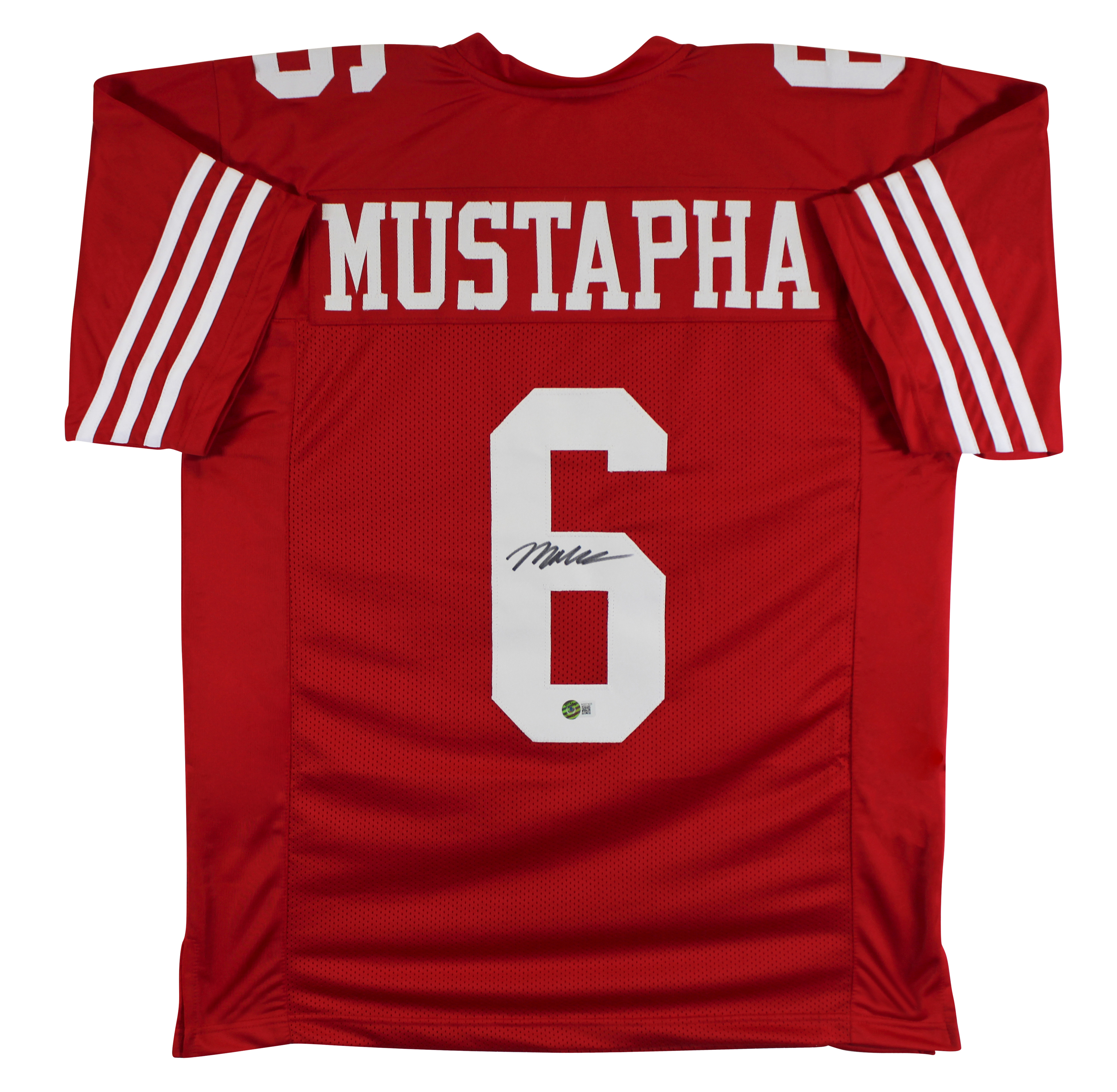 This Autographed Red Pro Style Jersey has been Personally Signed by Malik Mustapha of the San Francisco 49ers. This item is 100% Authentic to include a hologram by Beckett Authentication Services. This item will come with an affixed Beckett Authentication Services (BAS) authentication sticker, which includes a scannable QR code to verify authenticity. Please note that Beckett no longer provides serial-numbered COA cards, and the attached BAS sticker will serve as the complete authentication for this item. We have multiples of this same item. While the photographs are representative of this item, the size, placement and strength of the signature may vary. Each item is hand signed, therefore, each autograph is unique. This is a X-Large sized, non-branded, custom-stitched Jersey.