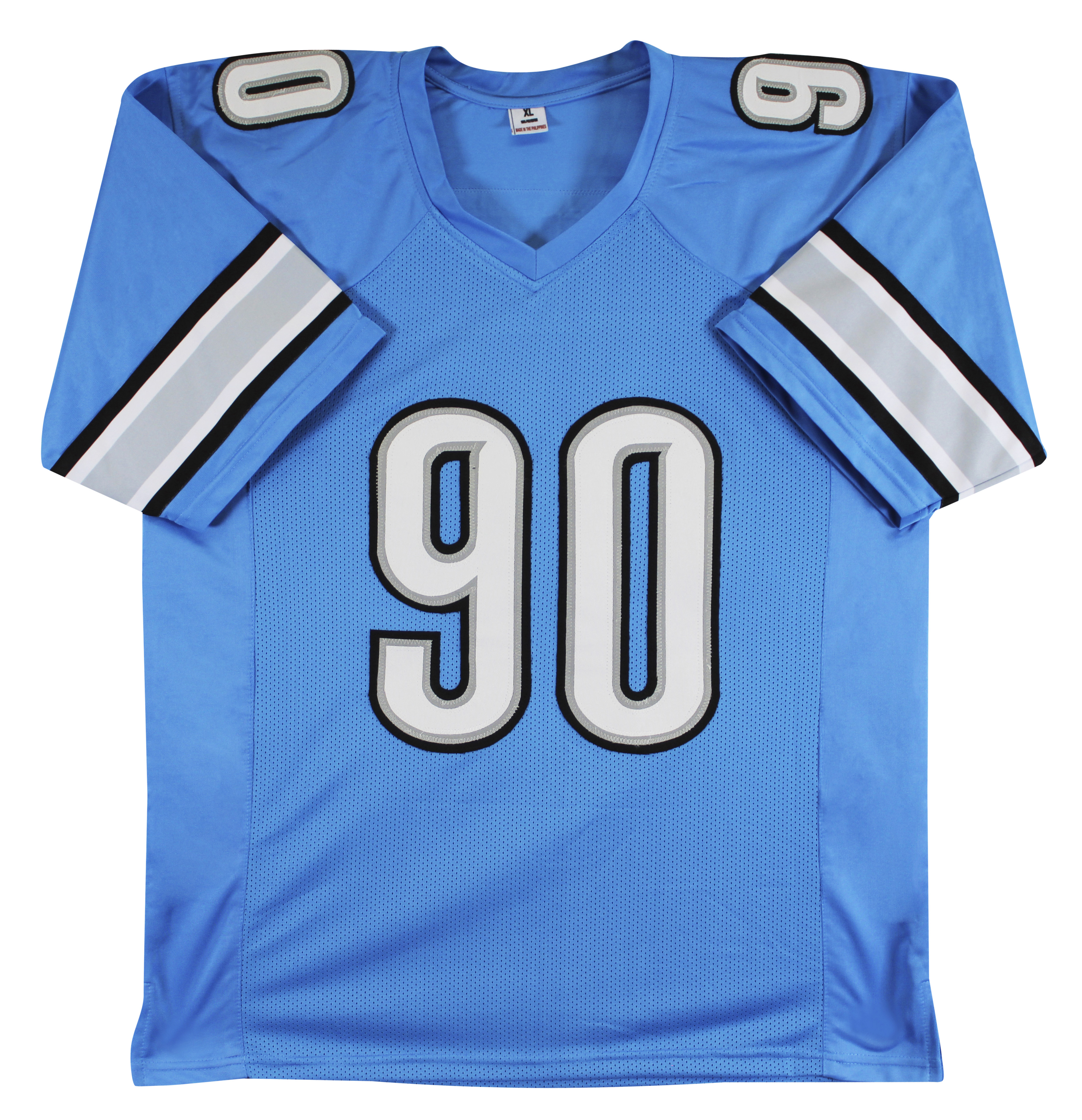 This Autographed Blue Pro Style Jersey has been Personally Signed by Ndamukong Suh of the Detroit Lions. This item is 100% Authentic to include a hologram by Beckett Authentication Services. This item will come with an affixed Beckett Authentication Services (BAS) authentication sticker, which includes a scannable QR code to verify authenticity. Please note that Beckett no longer provides serial-numbered COA cards, and the attached BAS sticker will serve as the complete authentication for this item. This is a BAS Witnessed Protection Program item which means a Beckett Authentication Service representative was present when this item was being signed. We conducted an autograph signing with Ndamukong Suh where multiples of the same item were signed. While the photographs are representative of this item, the size, placement and strength of the signature may vary. Each item is hand signed, therefore, each autograph is unique. This item can be verified through BAS Witnessed. This is a X-Large sized, non-branded, custom-stitched Jersey.