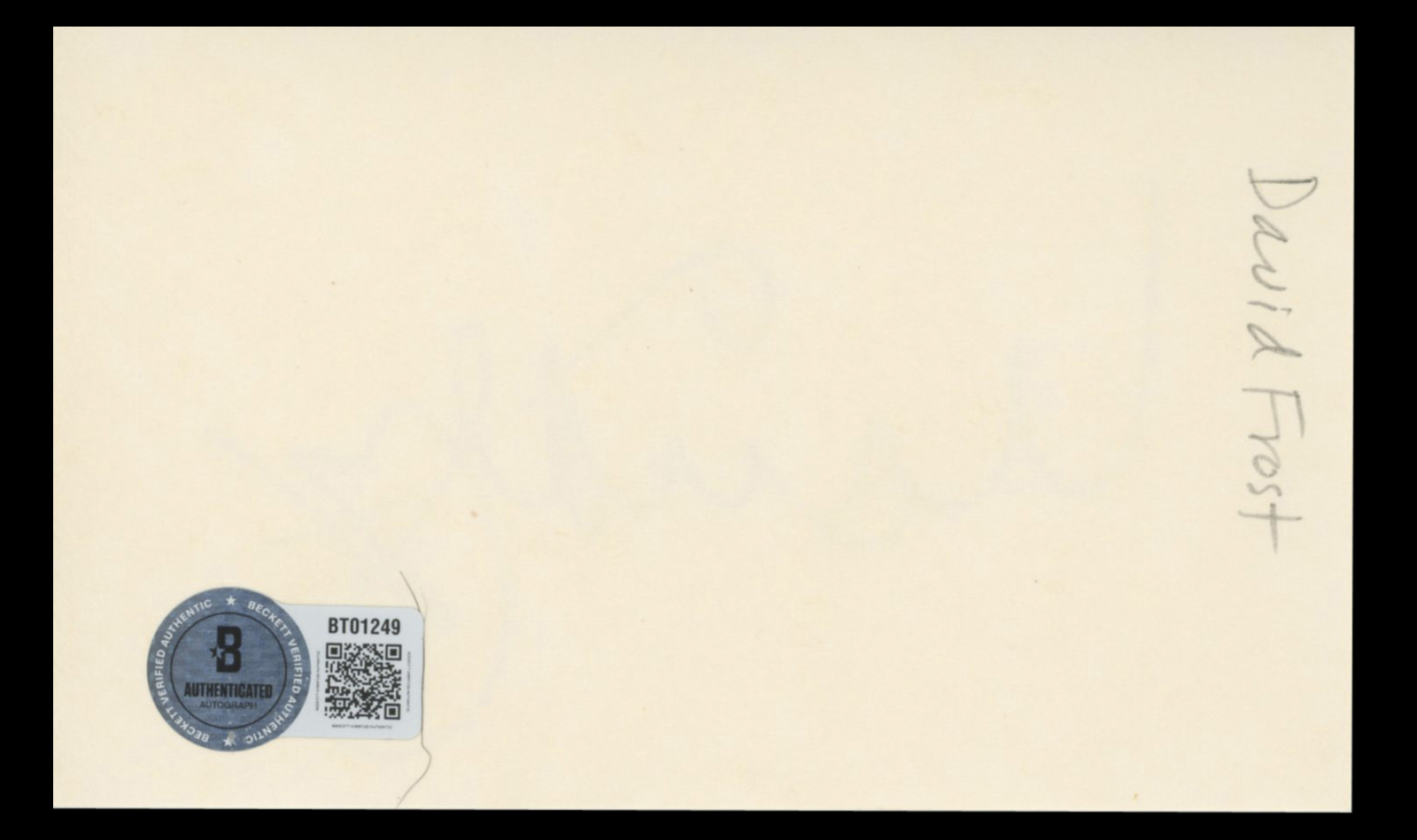 This Autographed 3x5 Index Card has been Personally Signed by David Frost of That Was The Week That Was. This item is 100% Authentic to include a hologram by Beckett Authentication Services. This item will come with an affixed Beckett Authentication Services (BAS) authentication sticker, which includes a scannable QR code to verify authenticity. Please note that Beckett no longer provides serial-numbered COA cards, and the attached BAS sticker will serve as the complete authentication for this item. The authenticity can be verified on Beckett Authentication Services website.