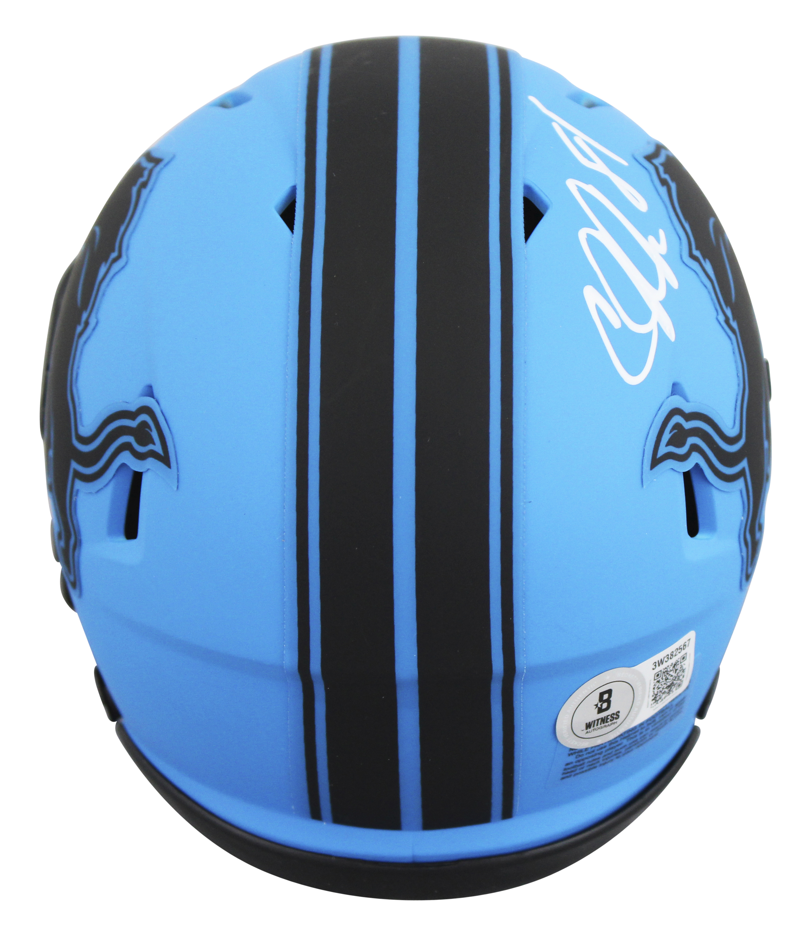 This Autographed Alternate Rave Speed Mini Helmet W/ Uv Mirrored Back Acrylic Display Case has been Personally Signed by Calvin Johnson of the Detroit Lions. This item is 100% Authentic to include a hologram by Beckett Authentication Services. This item will come with an affixed Beckett Authentication Services (BAS) authentication sticker, which includes a scannable QR code to verify authenticity. Please note that Beckett no longer provides serial-numbered COA cards, and the attached BAS sticker will serve as the complete authentication for this item. This is a BAS Witnessed Protection Program item which means a Beckett Authentication Service representative was present when this item was being signed. We conducted an autograph signing with Calvin Johnson where multiples of the same item were signed. While the photographs are representative of this item, the size, placement and strength of the signature may vary. Each item is hand signed, therefore, each autograph is unique. This item can be verified through BAS Witnessed.