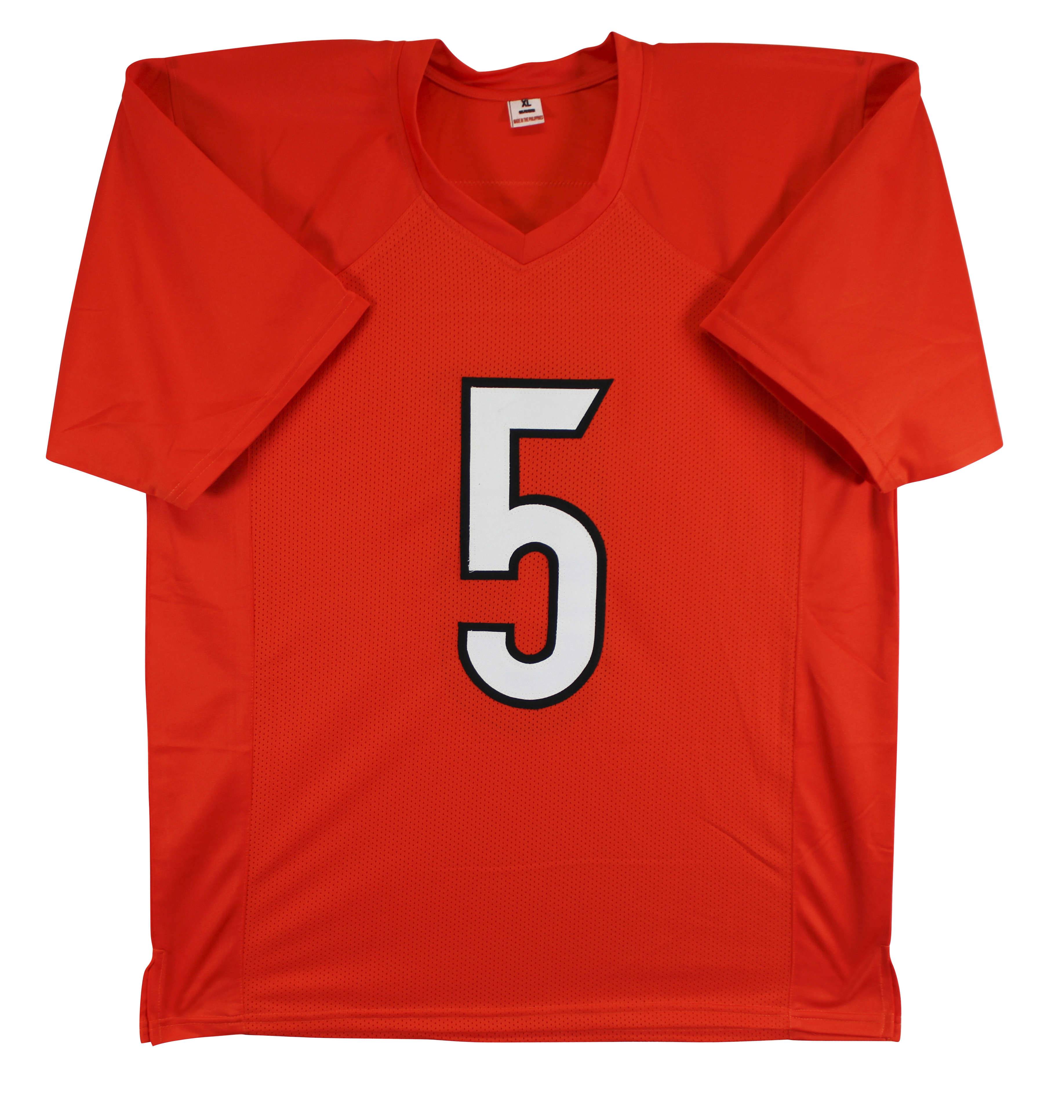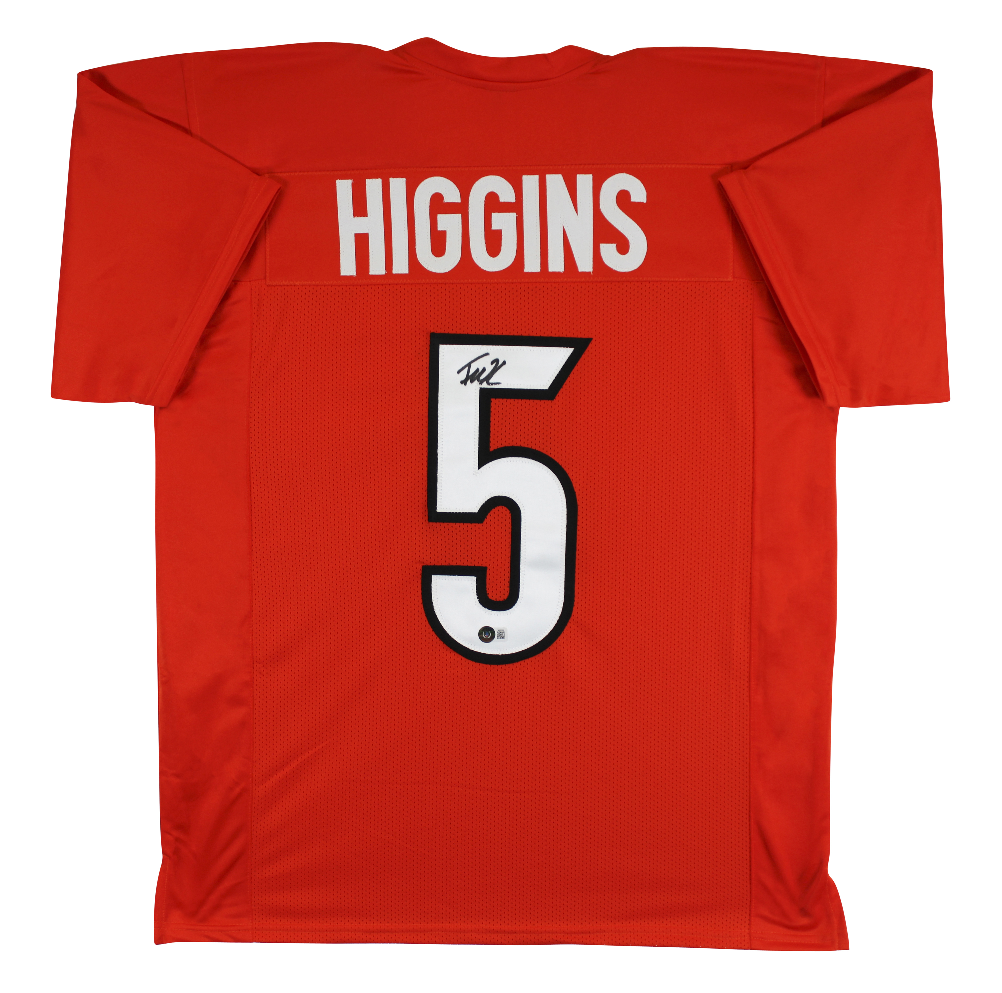 This Autographed Orange Pro Style Jersey has been Personally Signed by Tee Higgins of the Cincinnati Bengals. This item is 100% Authentic to include a hologram by Beckett Authentication Services. This item will come with an affixed Beckett Authentication Services (BAS) authentication sticker, which includes a scannable QR code to verify authenticity. Please note that Beckett no longer provides serial-numbered COA cards, and the attached BAS sticker will serve as the complete authentication for this item. This is a BAS Witnessed Protection Program item which means a Beckett Authentication Service representative was present when this item was being signed. We conducted an autograph signing with Tee Higgins where multiples of the same item were signed. While the photographs are representative of this item, the size, placement and strength of the signature may vary. Each item is hand signed, therefore, each autograph is unique. This item can be verified through BAS Witnessed. This is a X-Large sized, non-branded, custom-stitched Jersey.