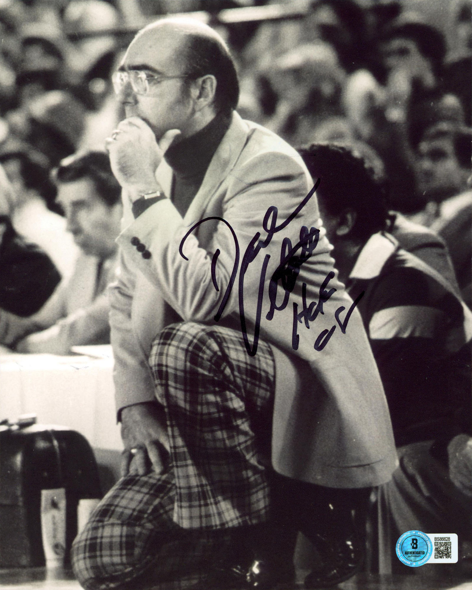 This Autographed Vertical 8x10 Photo with the inscription of "HOF" has been Personally Signed by Dick Vitale. This item is 100% Authentic to include a hologram by Beckett Authentication Services. This item will come with an affixed Beckett Authentication Services (BAS) authentication sticker, which includes a scannable QR code to verify authenticity. Please note that Beckett no longer provides serial-numbered COA cards, and the attached BAS sticker will serve as the complete authentication for this item. We have multiples of this same item. While the photographs are representative of this item, the size, placement and strength of the signature may vary. Each item is hand signed, therefore, each autograph is unique.