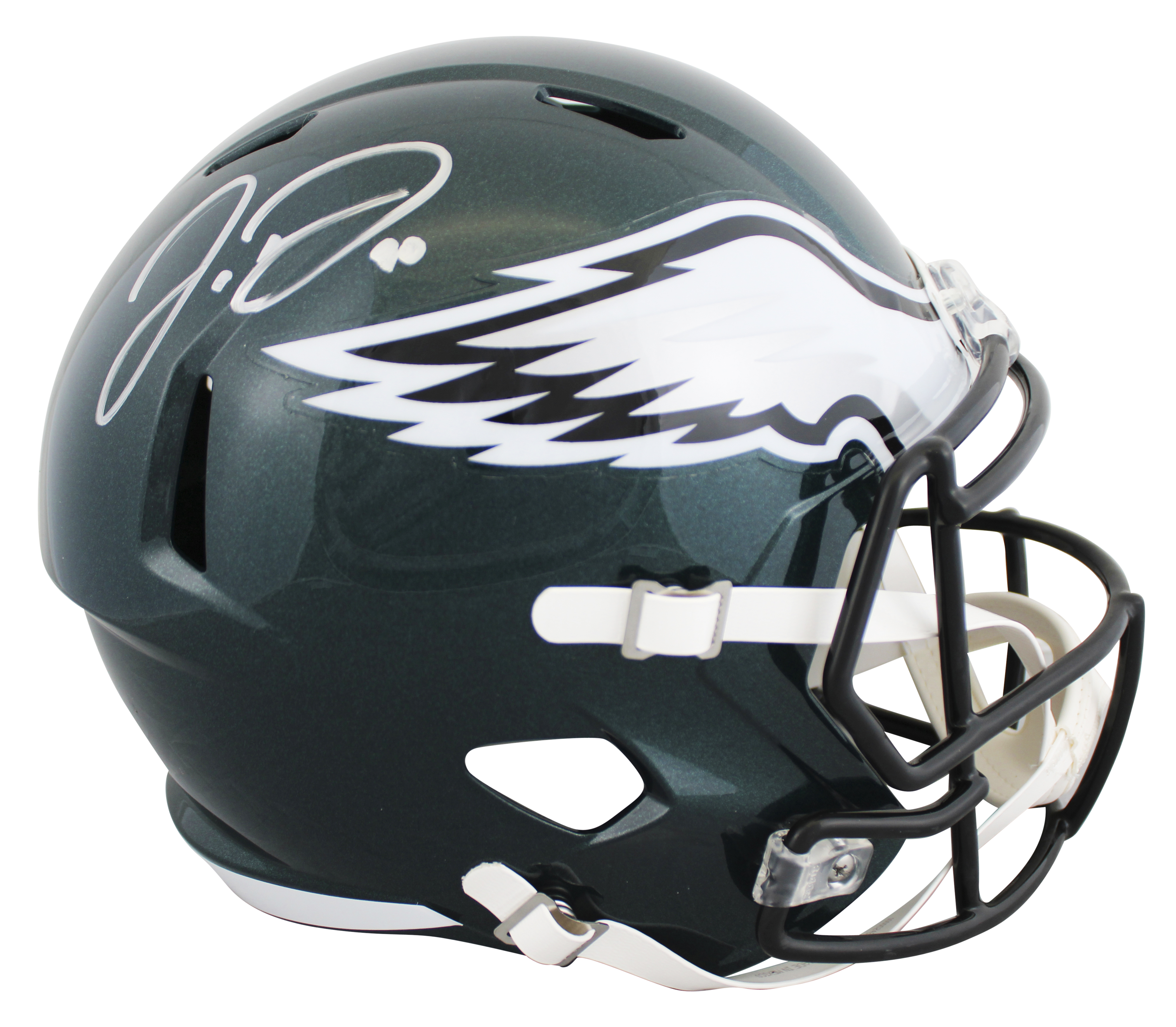 This Autographed W/ Silver Signature Riddell Full Size Speed Rep Helmet W/ Uv Mirrored Back Acrylic Display Case has been Personally Signed by Jordan Davis of the Philadelphia Eagles. This item is 100% Authentic to include a hologram by James Spence Authentication Services. This item will come with an affixed James Spence Authentication Services (JSA) authentication sticker, which includes a scannable QR code to verify authenticity. Please note that JSA no longer provides serial-numbered COA cards with witnessed items, and the attached JSA sticker will serve as the complete authentication for this item. This is a JSA Witnessed Protection Program item which means a JSA representative was present when this item was being signed. We conducted an autograph signing with Jordan Davis where multiples of the same item were signed. While the photographs are representative of this item, the size, placement and strength of the signature may vary. Each item is hand signed, therefore, each autograph is unique. This item can be verified through JSA Witness.