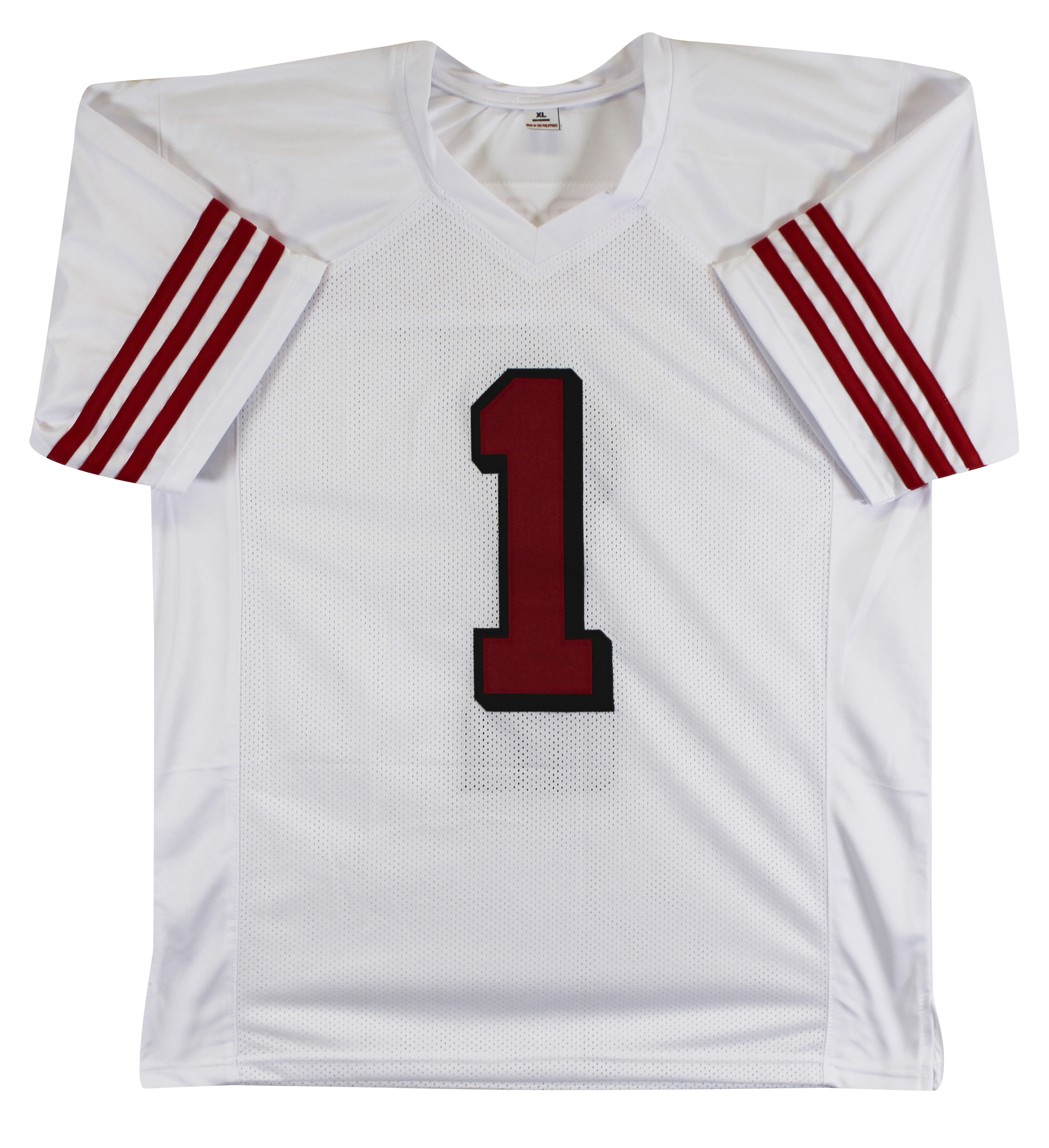 This Autographed w/ Dropshadow White Pro Style Jersey has been Personally Signed by Ricky Pearsall of the San Francisco 49ers. This item is 100% Authentic to include a hologram by Beckett Authentication Services. This item will come with an affixed Beckett Authentication Services (BAS) authentication sticker, which includes a scannable QR code to verify authenticity. Please note that Beckett no longer provides serial-numbered COA cards, and the attached BAS sticker will serve as the complete authentication for this item. This is a BAS Witnessed Protection Program item which means a Beckett Authentication Service representative was present when this item was being signed. We conducted an autograph signing with Ricky Pearsall where multiples of the same item were signed. While the photographs are representative of this item, the size, placement and strength of the signature may vary. Each item is hand signed, therefore, each autograph is unique. This item can be verified through BAS Witnessed. This is a X-Large sized, non-branded, custom-stitched Jersey.