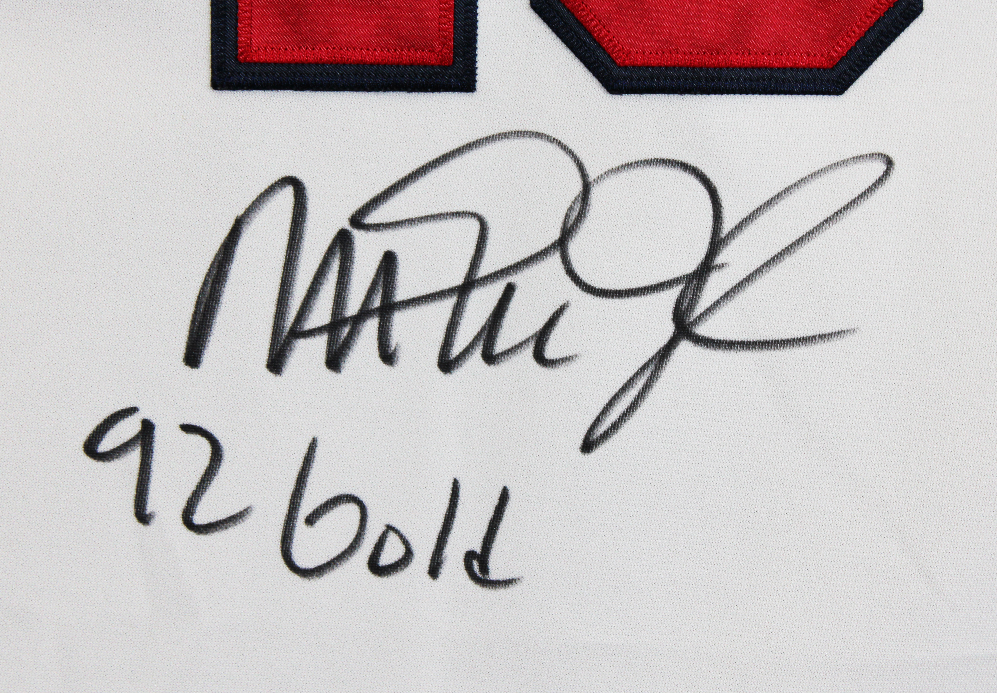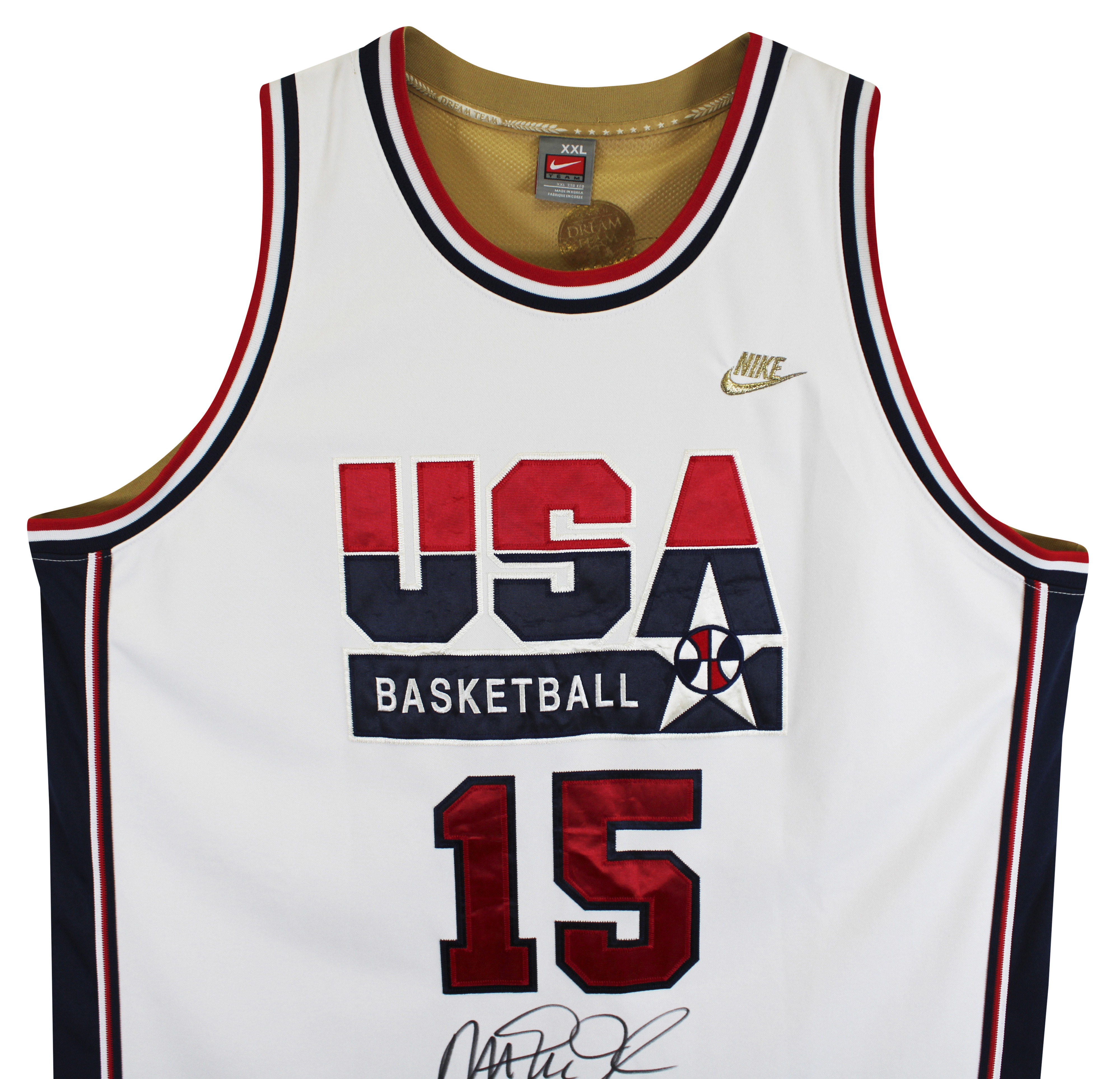 This Autographed White Nike Team USA Dream Team Jersey with the inscription of "92 Gold" has been Personally Signed by Magic Johnson of the Los Angeles Lakers. This item is 100% Authentic to include a hologram by Beckett Authentication Services. This item will come with an affixed Beckett Authentication Services (BAS) authentication sticker, which includes a scannable QR code to verify authenticity. Please note that Beckett no longer provides serial-numbered COA cards, and the attached BAS sticker will serve as the complete authentication for this item. This is a BAS Witnessed Protection Program item which means a Beckett Authentication Service representative was present when this item was being signed. The authenticity can be verified on Beckett Authentication Services website. This is a XX-Large sized Jersey.