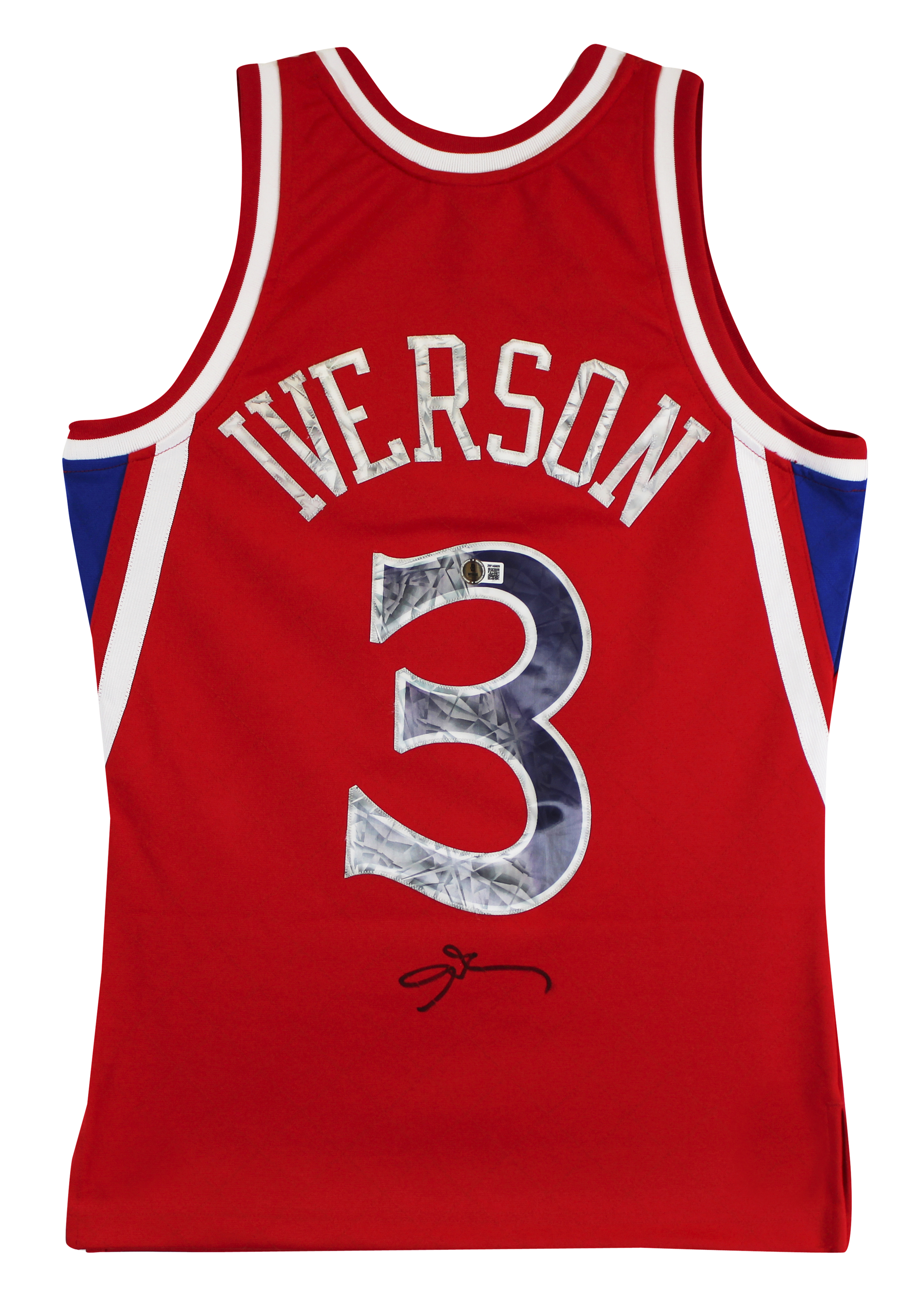 This Autographed Red 75th Anniversary Mitchell & Ness 1996-97 Hardwood Classics Swingman Jersey has been Personally Signed by Allen Iverson of the Philadelphia 76ers. This item is 100% Authentic to include a hologram by Beckett Authentication Services. This item will come with an affixed Beckett Authentication Services (BAS) authentication sticker, which includes a scannable QR code to verify authenticity. Please note that Beckett no longer provides serial-numbered COA cards, and the attached BAS sticker will serve as the complete authentication for this item. This is a BAS Witnessed Protection Program item which means a Beckett Authentication Service representative was present when this item was being signed. We have multiples of this same item. While the photographs are representative of this item, the size, placement and strength of the signature may vary. Each item is hand signed, therefore, each autograph is unique. This is a Small sized Jersey.