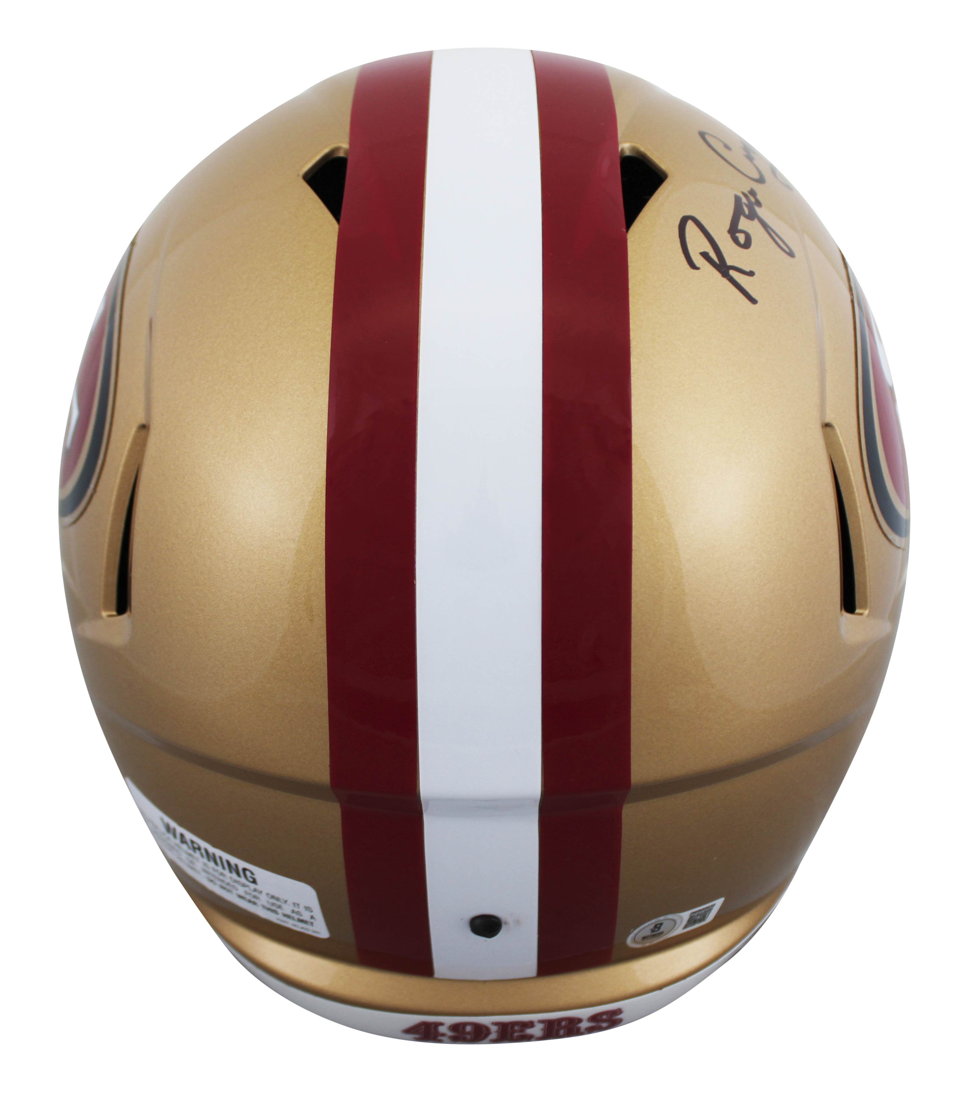 This Autographed Riddell Full Size Speed Rep Helmet has been Personally Signed by Roger Craig of the San Francisco 49ers. This item is 100% Authentic to include a hologram by Beckett Authentication Services. This item will come with an affixed Beckett Authentication Services (BAS) authentication sticker, which includes a scannable QR code to verify authenticity. Please note that Beckett no longer provides serial-numbered COA cards, and the attached BAS sticker will serve as the complete authentication for this item. This is a BAS Witnessed Protection Program item which means a Beckett Authentication Service representative was present when this item was being signed. We conducted an autograph signing with Roger Craig where multiples of the same item were signed. While the photographs are representative of this item, the size, placement and strength of the signature may vary. Each item is hand signed, therefore, each autograph is unique. This item can be verified through BAS Witnessed.