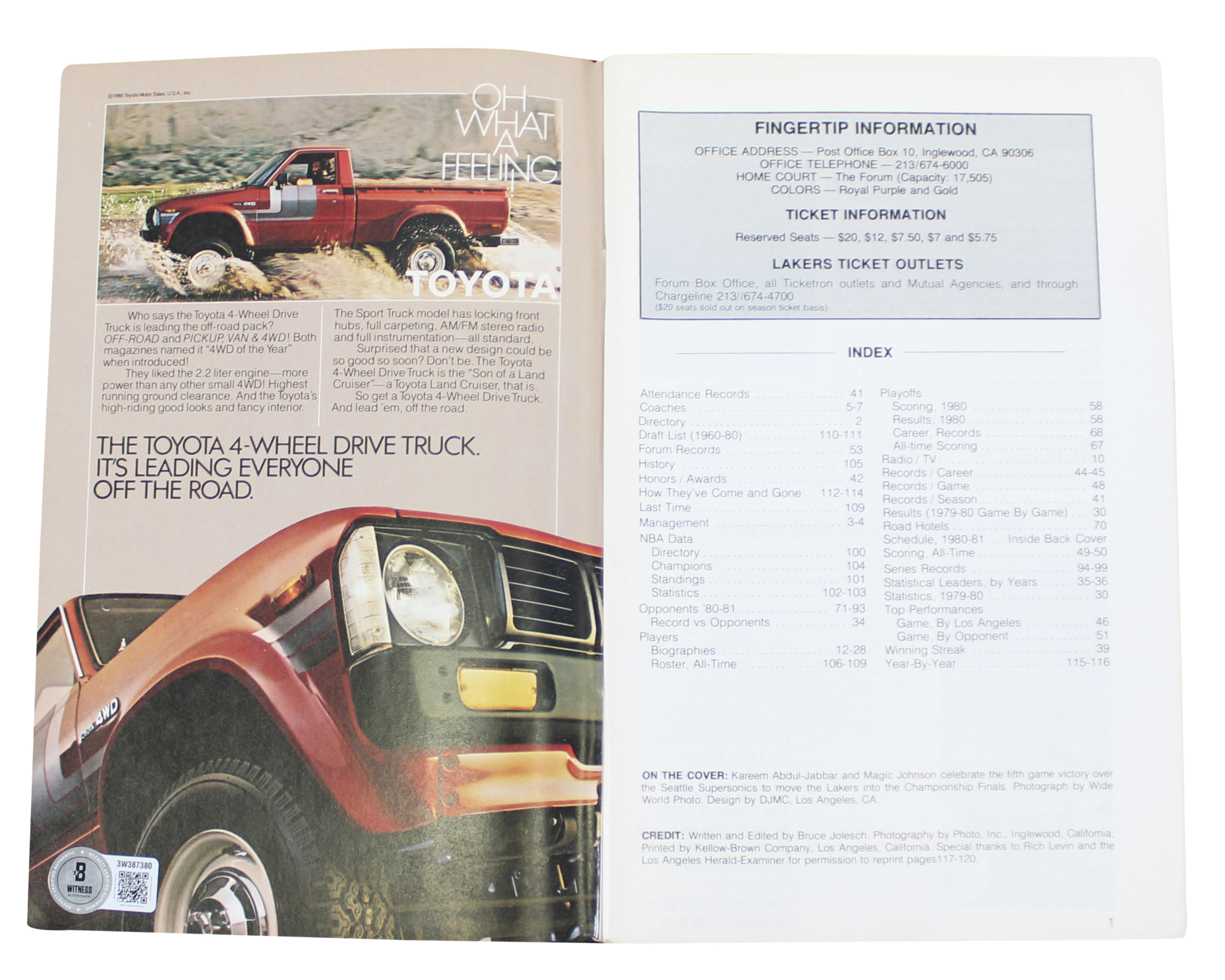 This Autographed 1980-1981 Media Guide has been Personally Signed by Magic Johnson of the Los Angeles Lakers. This item is 100% Authentic to include a hologram by Beckett Authentication Services. This item will come with an affixed Beckett Authentication Services (BAS) authentication sticker, which includes a scannable QR code to verify authenticity. Please note that Beckett no longer provides serial-numbered COA cards, and the attached BAS sticker will serve as the complete authentication for this item. This is a BAS Witnessed Protection Program item which means a Beckett Authentication Service representative was present when this item was being signed. The authenticity can be verified on Beckett Authentication Services website.