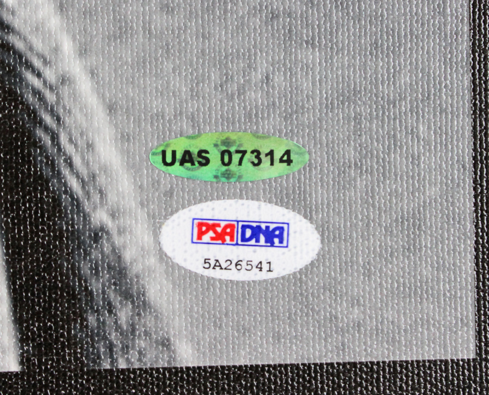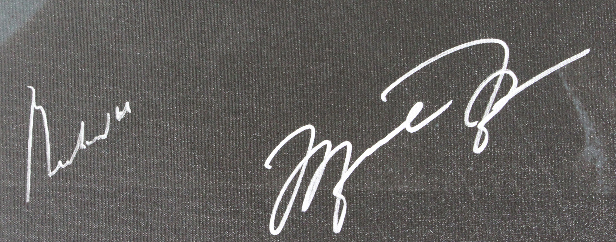 This Autographed & Framed 30x40 Canvas has been Personally Signed by Muhammad Ali & Michael Jordan. This item is 100% Authentic and comes with a PSA/DNA Certification Card and a matching numbered Hologram #5A26541 for the Muhammad Ali Signature. For the Michael Jordan signature it will include a Certificate of Authenticity (COA) / hologram by UDA #UAS07314. Please refer to photos prior to purchase. This item has been professionally framed to overall dimensions of approximately 32.5 x 44.5 inches.