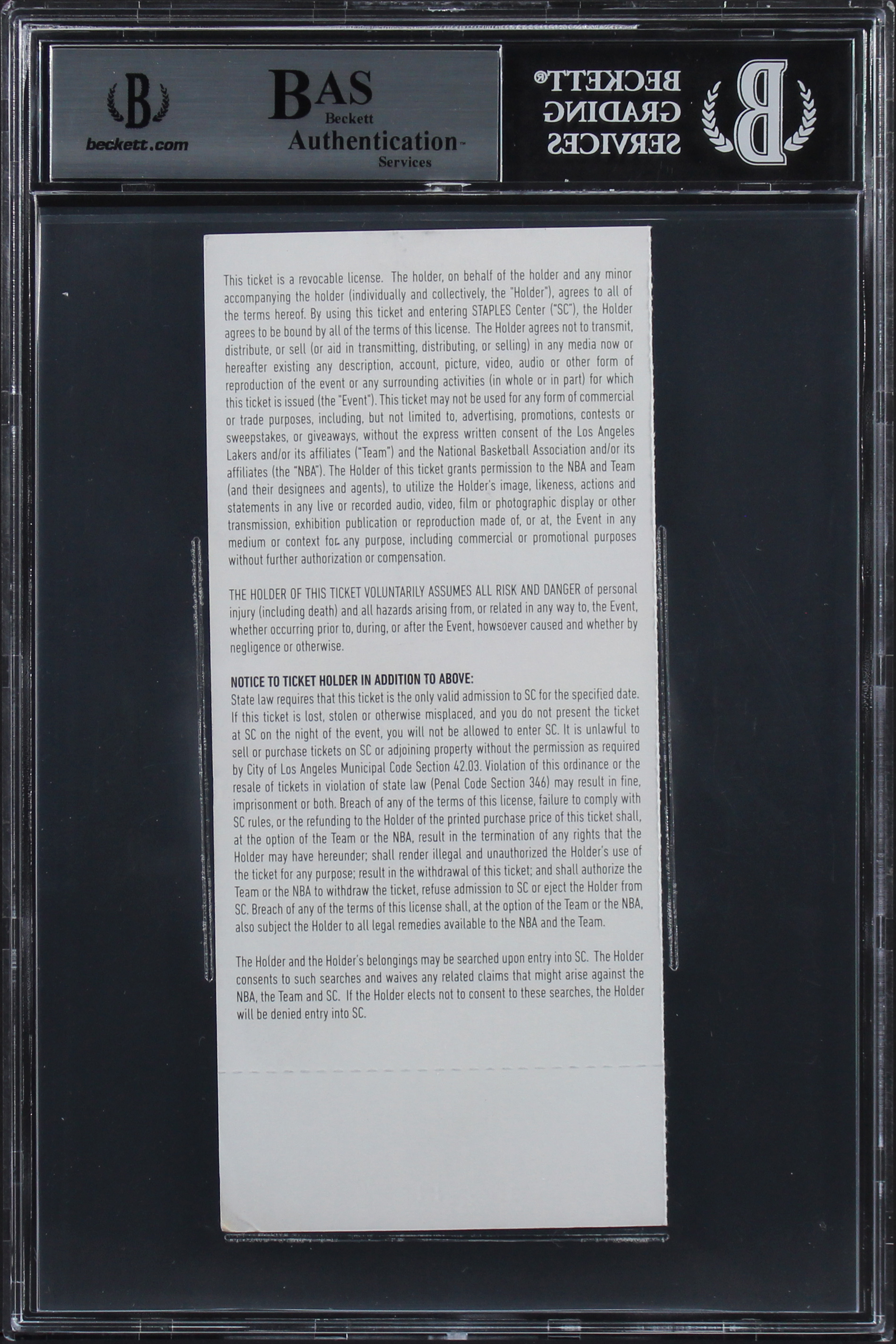 Lakers Kobe Bryant Authentic Signed Final Game Ticket Stub BAS Slabbed