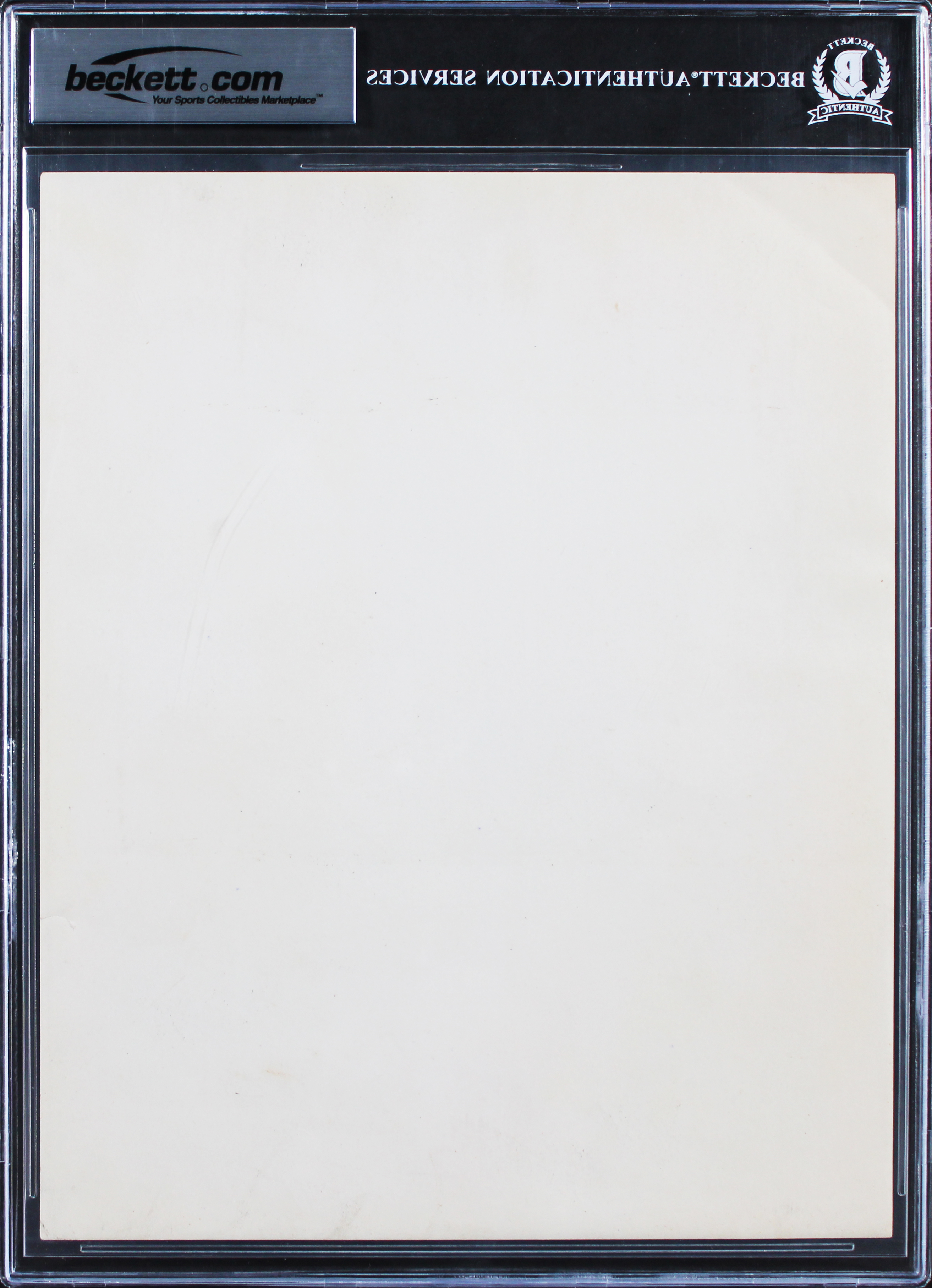 This Autographed 8x10 Photo with the inscription of "Pasadena 1931" has been Personally Signed by Albert Einstein. This item is 100% Authentic, it comes slabbed and authenticated by Beckett Authentication Services. The authenticity can be verified on Beckett Authentication Services website. A superb signed photograph of Einstein with his wife Elsa while disembarking from the SS Belgenland upon their arrival at Pier I in San Diego on December 30, 1930. Signed by Einstein in blue fountain ink at top right, adding "Pasadena 1931." A minor.25" tear at bottom left margin and a moderate fold at top right corner, neither one of which materially detracts from this excellent image. Overall very good condition. While this photograph is dated 1931 and in Pasadena, the photo itself was taken on December 30, 1930 as the Einsteins arrived in San Diego.