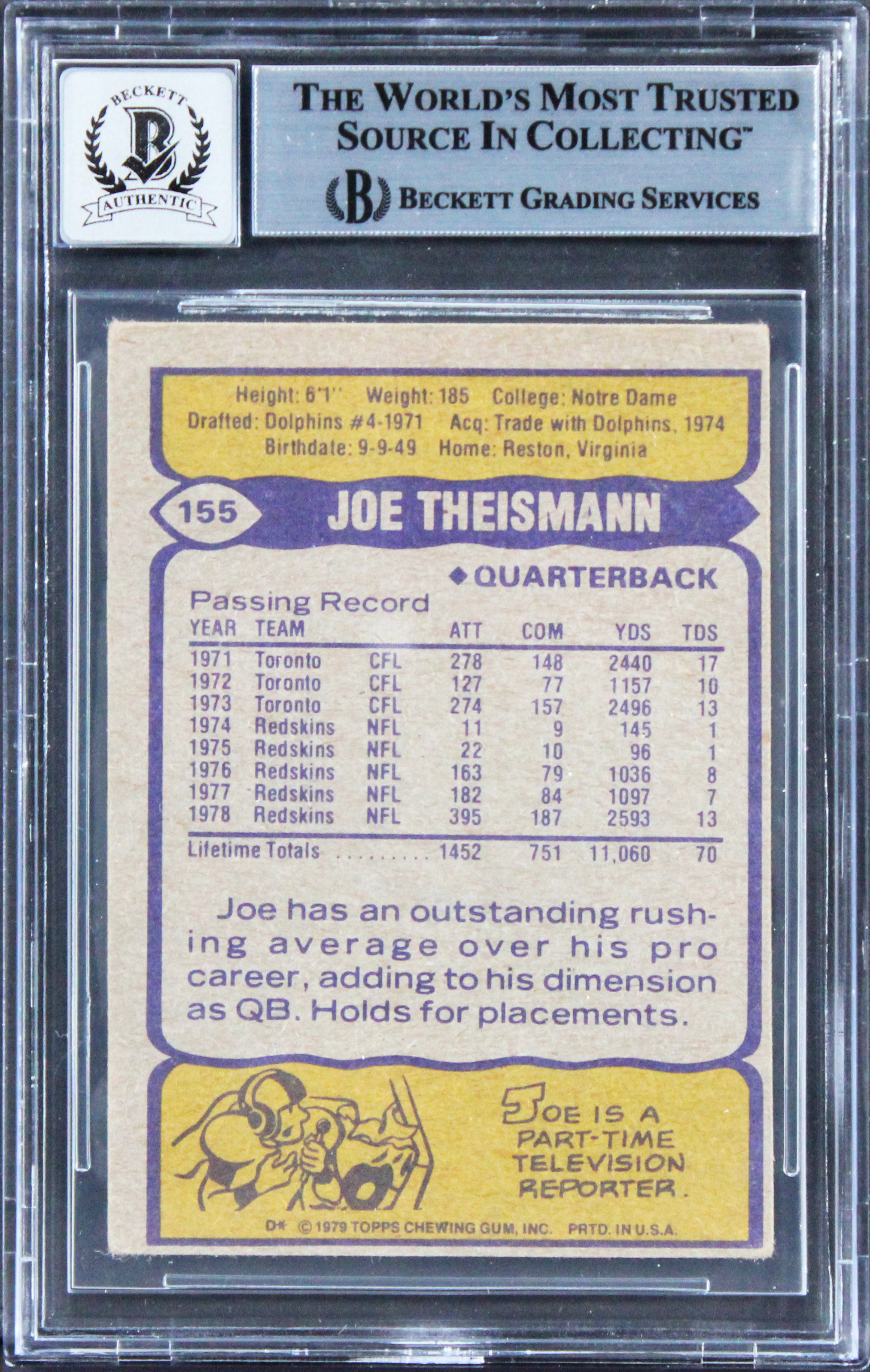 Commanders Joe Theismann Signed 1979 Topps #155 Card Auto Graded 10! BAS Slabbed