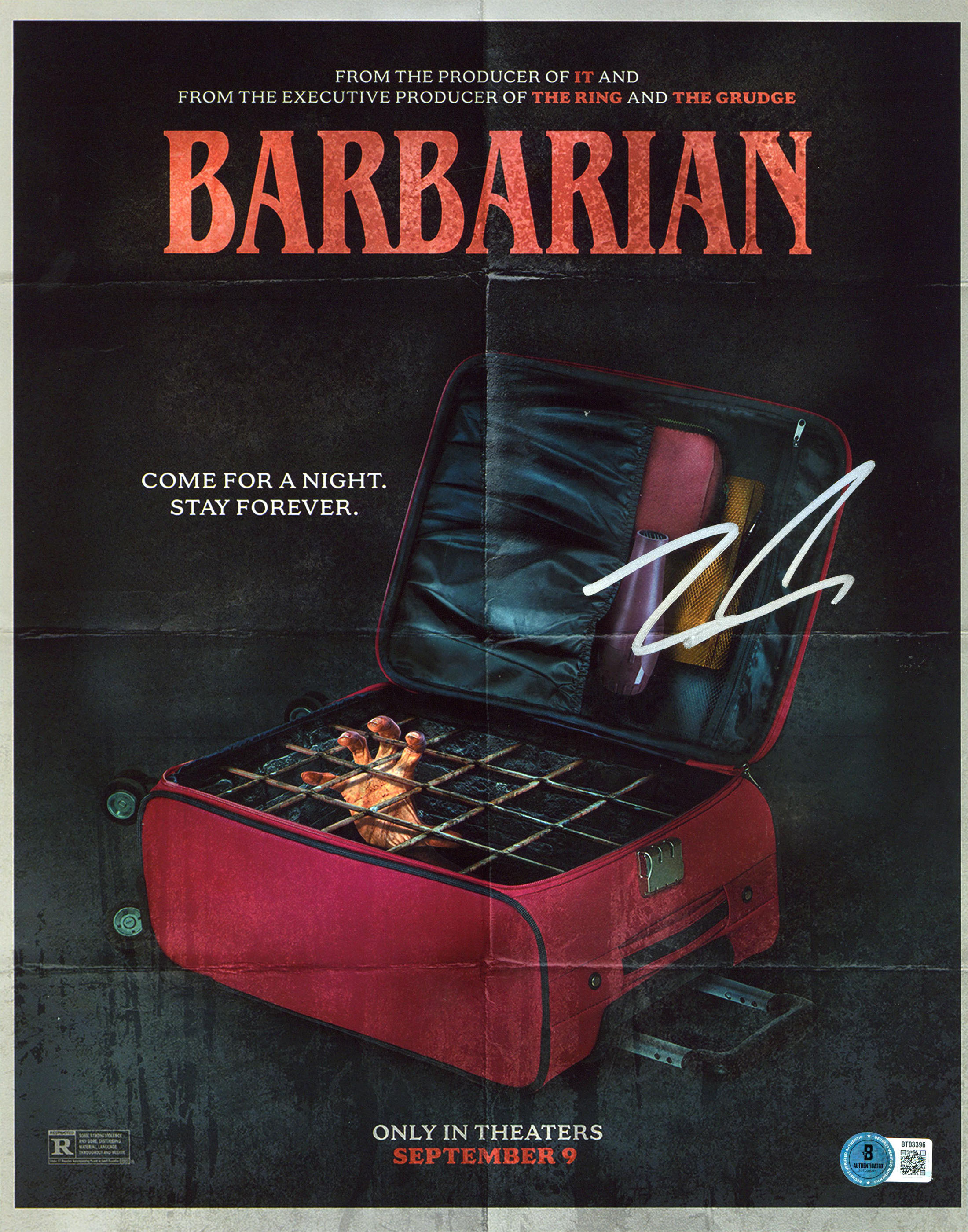 This Autographed Vertical 11x14 Photo has been Personally Signed by Zach Cregger of Barbarian. This item is 100% Authentic to include a hologram by Beckett Authentication Services. This item will come with an affixed Beckett Authentication Services (BAS) authentication sticker, which includes a scannable QR code to verify authenticity. Please note that Beckett no longer provides serial-numbered COA cards, and the attached BAS sticker will serve as the complete authentication for this item. The authenticity can be verified on Beckett Authentication Services website.