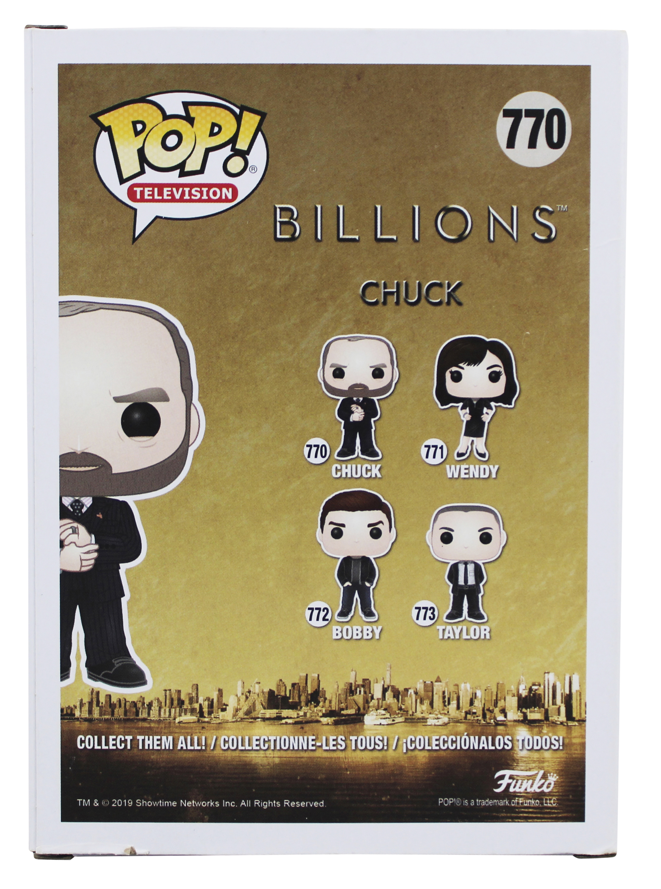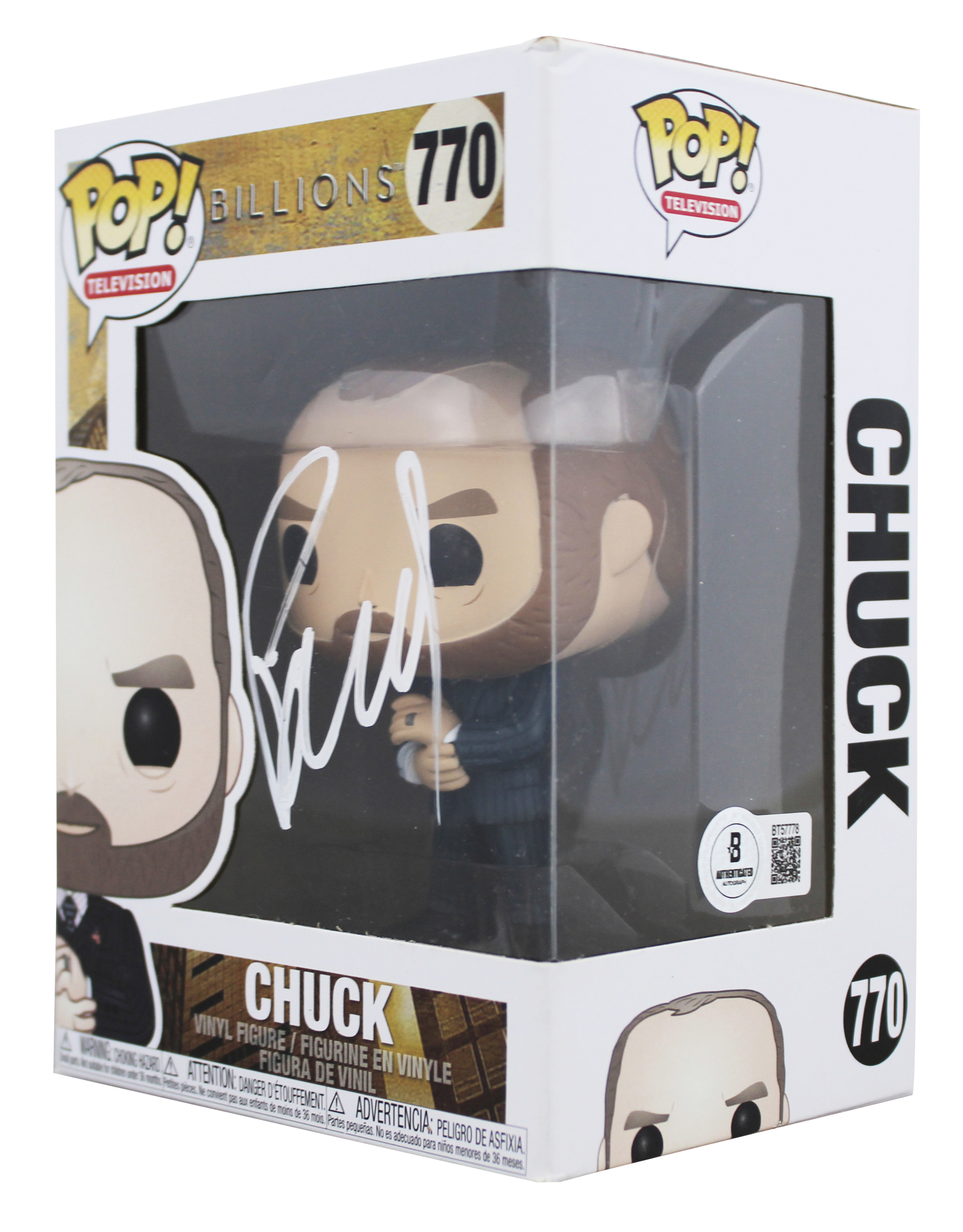 This Autographed Chuck #770 Funko Pop Vinyl Figure has been Personally Signed by Paul Giamatti of Billions. This item is 100% Authentic to include a hologram by Beckett Authentication Services. This item will come with an affixed Beckett Authentication Services (BAS) authentication sticker, which includes a scannable QR code to verify authenticity. Please note that Beckett no longer provides serial-numbered COA cards, and the attached BAS sticker will serve as the complete authentication for this item. The authenticity can be verified on Beckett Authentication Services website. This will be shipped in a Pop Protector. This Funko will have some handling wear from shipment to the signing and back. Please refer to pictures for item's condition prior to purchase.