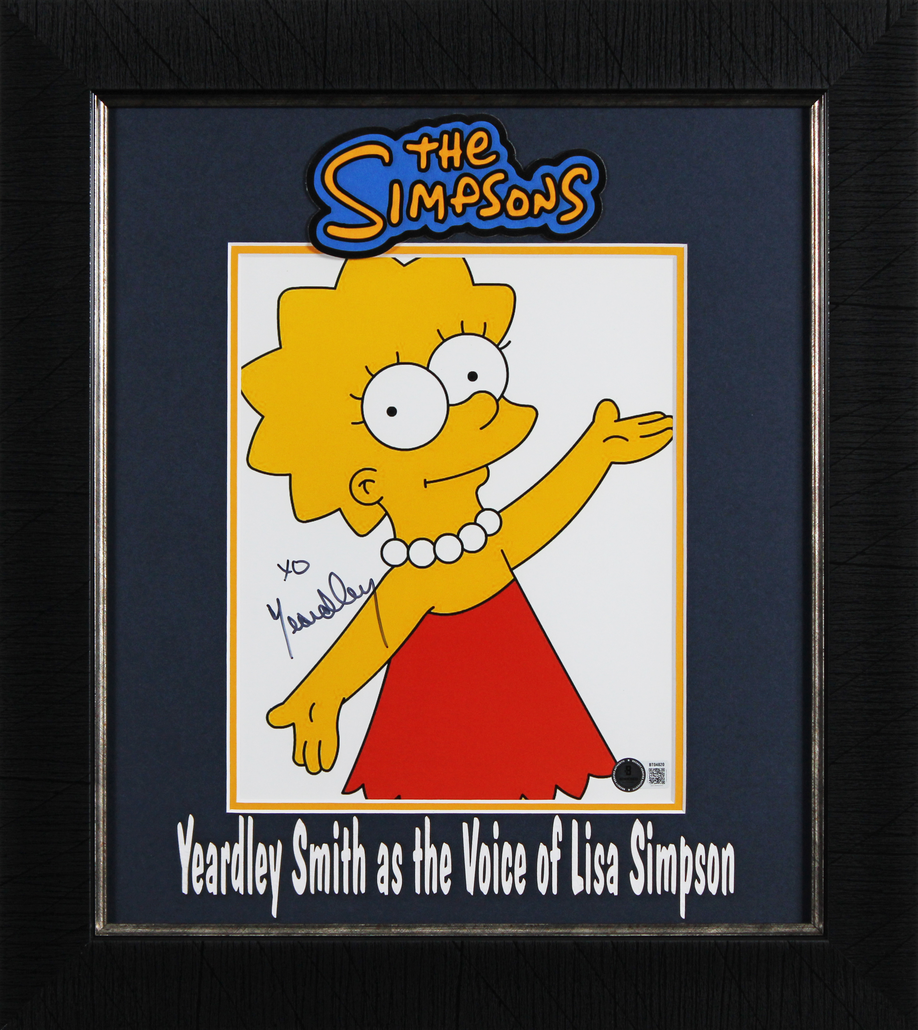 This Autographed 8x10 Framed Photo has been Personally Signed by Yeardley Smith of The Simpsons. This item is 100% Authentic to include a hologram by Beckett Authentication Services. This item will come with an affixed Beckett Authentication Services (BAS) authentication sticker, which includes a scannable QR code to verify authenticity. Please note that Beckett no longer provides serial-numbered COA cards, and the attached BAS sticker will serve as the complete authentication for this item. The authenticity can be verified on Beckett Authentication Services website. This item has been professionally framed to overall dimensions of approximately 16.5 x 18.5 inches.