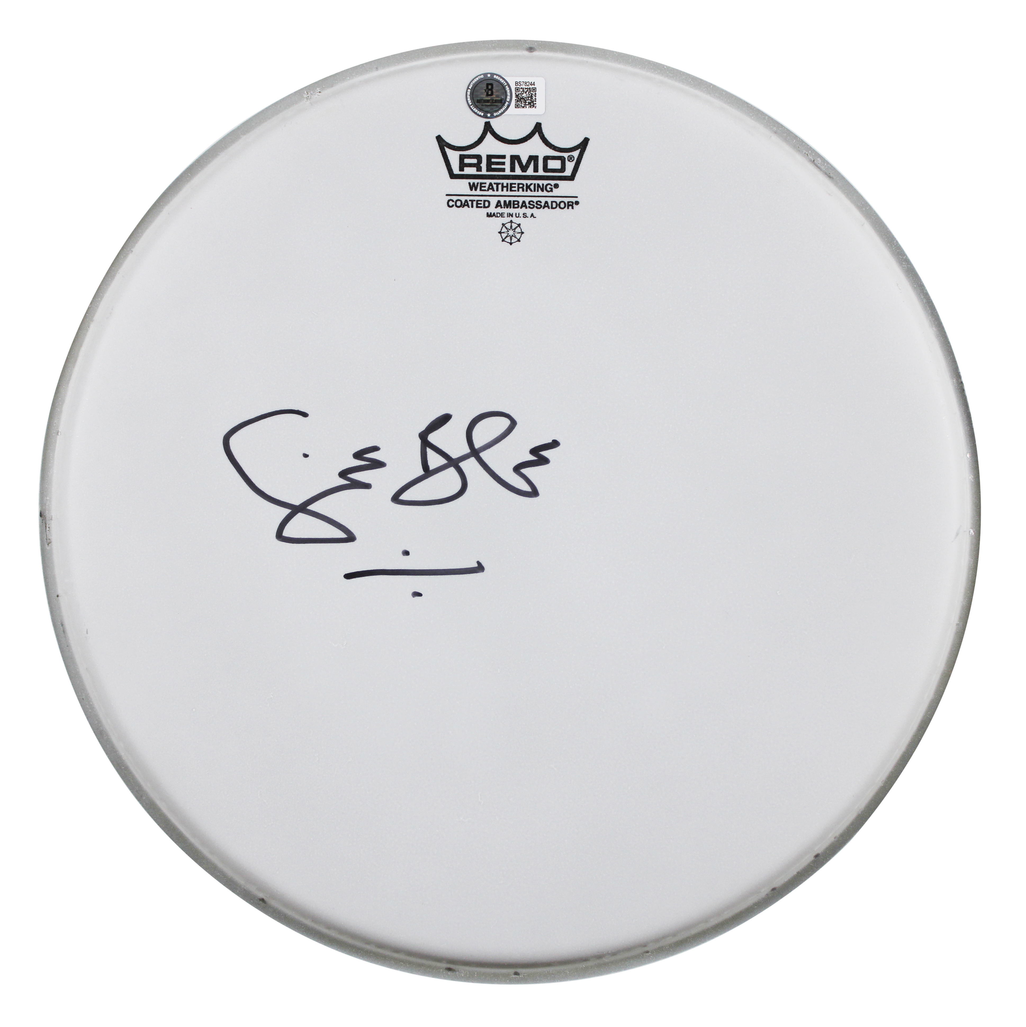This Autographed 12 Inch Remo Drum Head has been Personally Signed by Ginger Baker of Cream. This item is 100% Authentic to include a hologram by Beckett Authentication Services. This item will come with an affixed Beckett Authentication Services (BAS) authentication sticker, which includes a scannable QR code to verify authenticity. Please note that Beckett no longer provides serial-numbered COA cards, and the attached BAS sticker will serve as the complete authentication for this item. The authenticity can be verified on Beckett Authentication Services website.