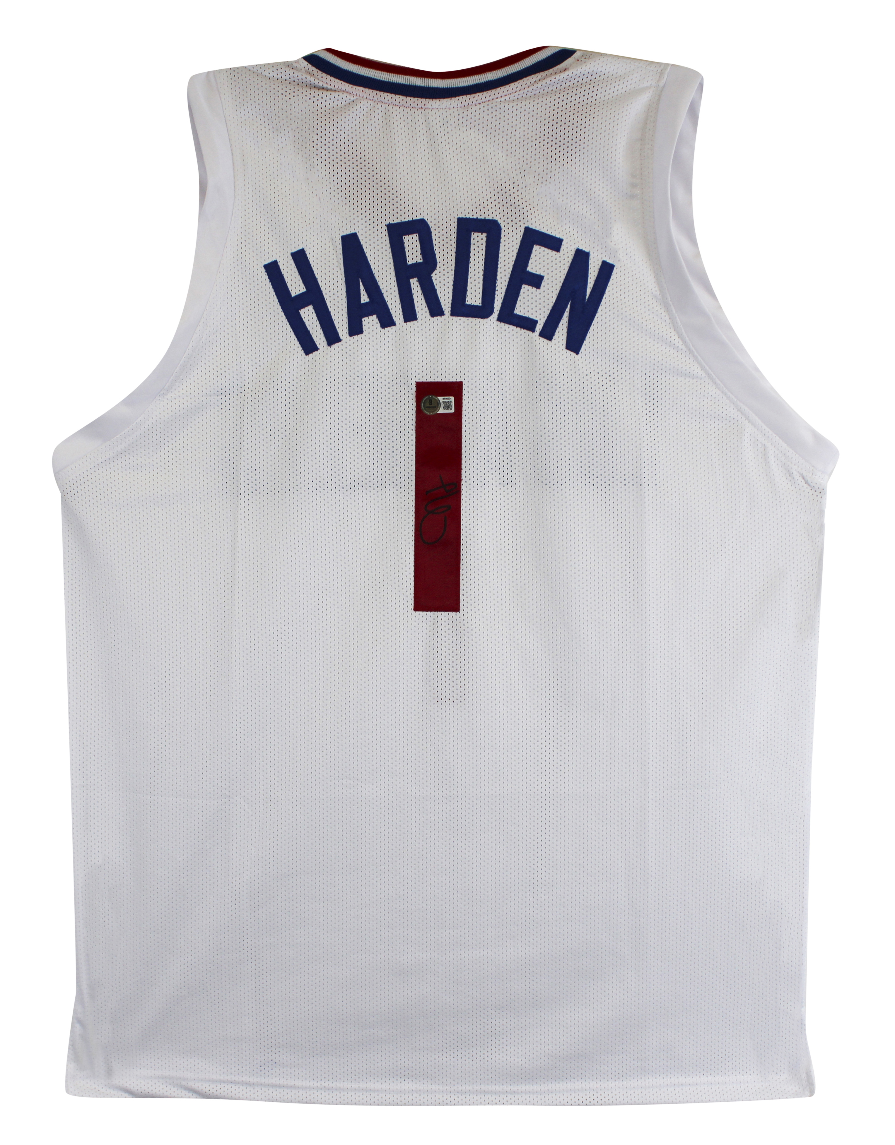 This Autographed White Pro Style Jersey has been Personally Signed by James Harden of the Los Angeles Clippers. This item is 100% Authentic to include a hologram by Beckett Authentication Services. This item will come with an affixed Beckett Authentication Services (BAS) authentication sticker, which includes a scannable QR code to verify authenticity. Please note that Beckett no longer provides serial-numbered COA cards, and the attached BAS sticker will serve as the complete authentication for this item. We have multiples of this same item. While the photographs are representative of this item, the size, placement and strength of the signature may vary. Each item is hand signed, therefore, each autograph is unique. This is a X-Large sized, non-branded, custom-stitched Jersey.