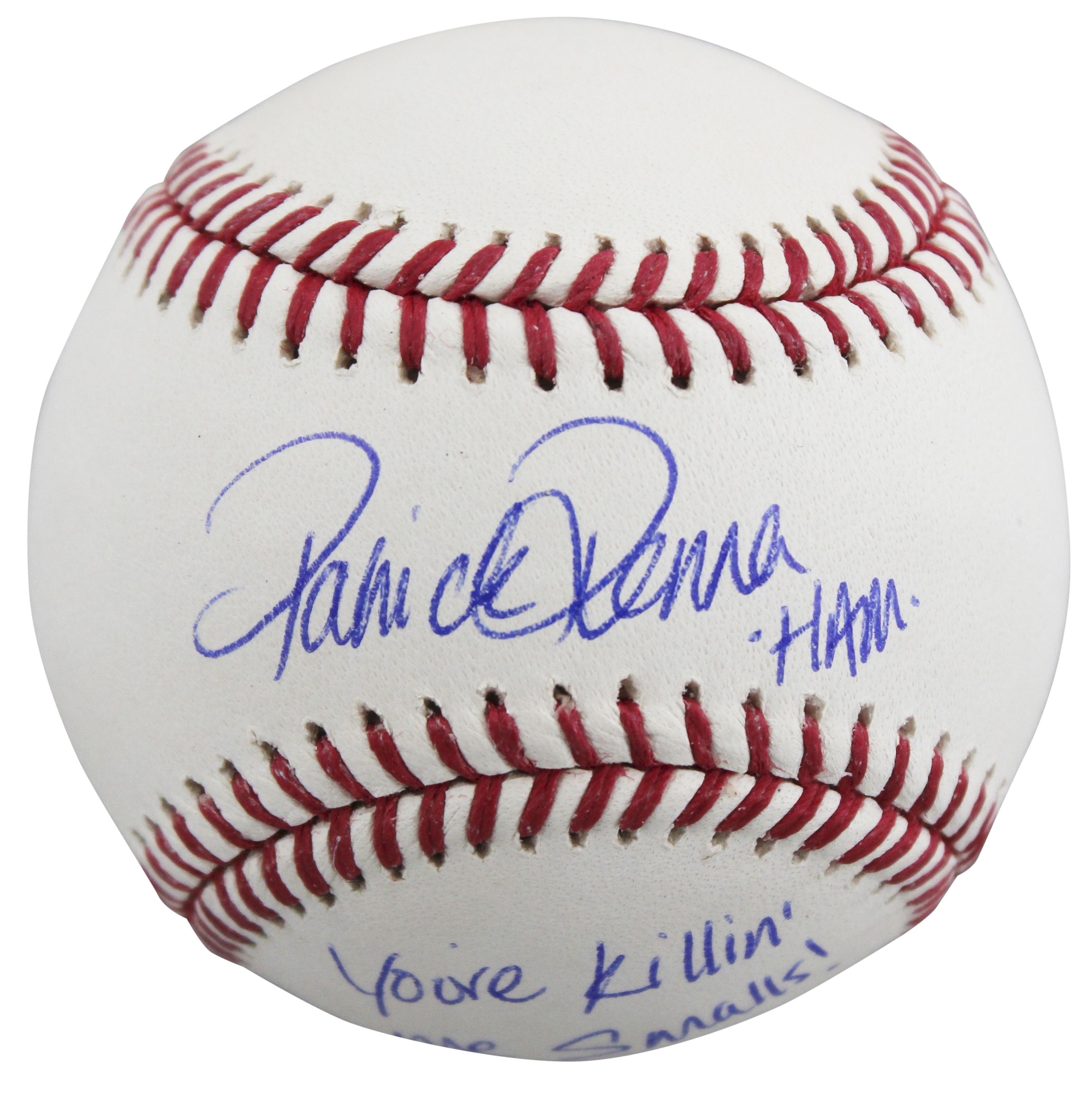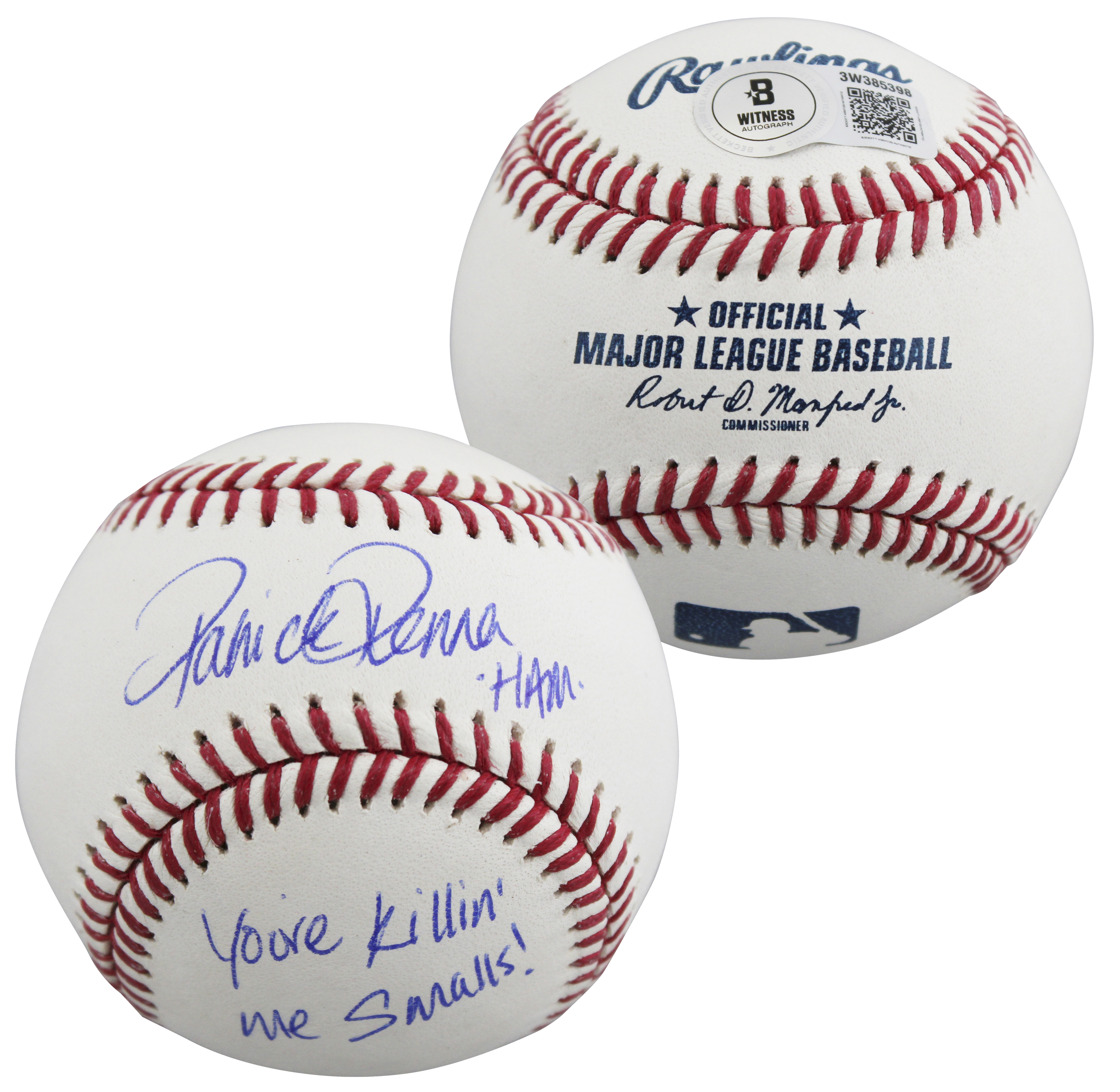 This Autographed Robert Manfred Oml Baseball with the inscription of "Ham, You're Killin' Me Smalls!" has been Personally Signed by Patrick Renna of The Sandlot. This item is 100% Authentic to include a hologram by Beckett Authentication Services. This item will come with an affixed Beckett Authentication Services (BAS) authentication sticker, which includes a scannable QR code to verify authenticity. Please note that Beckett no longer provides serial-numbered COA cards, and the attached BAS sticker will serve as the complete authentication for this item. This is a BAS Witnessed Protection Program item which means a Beckett Authentication Service representative was present when this item was being signed. We conducted an autograph signing with Patrick Renna where multiples of the same item were signed. While the photographs are representative of this item, the size, placement and strength of the signature may vary. Each item is hand signed, therefore, each autograph is unique.
