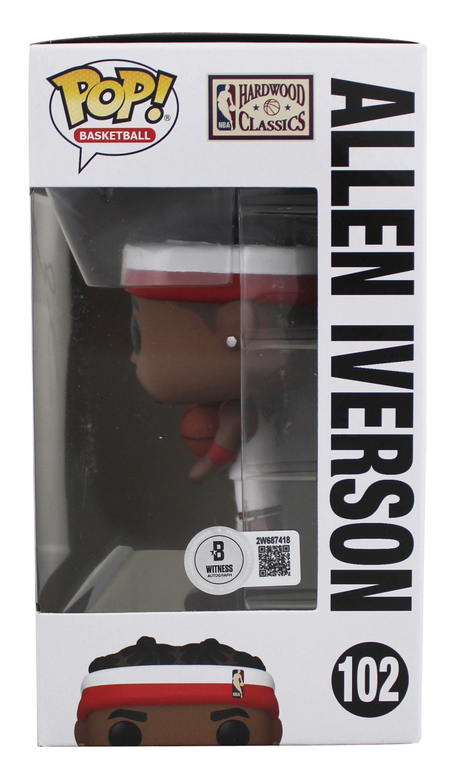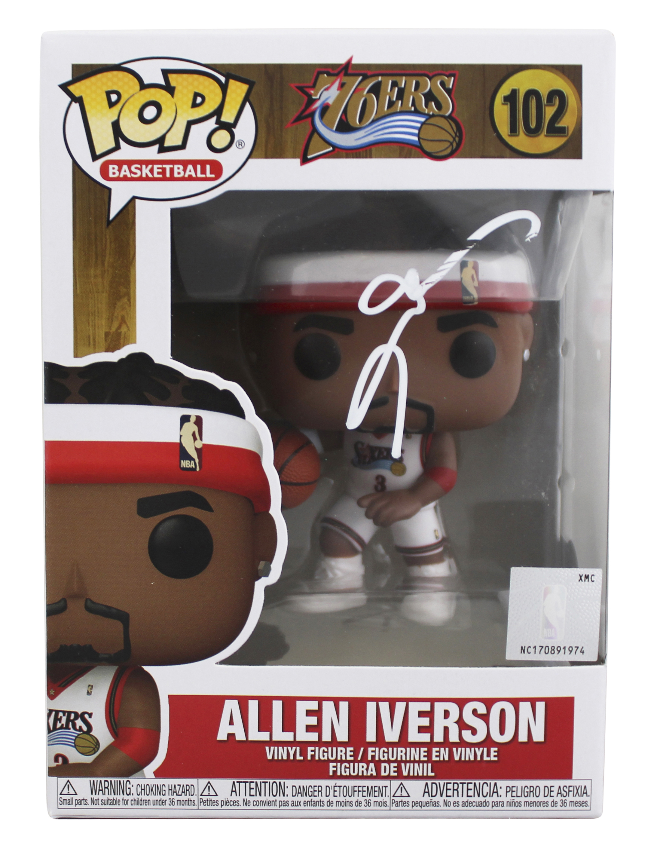 This Autographed Hardwood Classics #102 Funko Pop Vinyl Figure has been Personally Signed by Allen Iverson of the Philadelphia 76ers. This item is 100% Authentic to include a hologram by Beckett Authentication Services. This item will come with an affixed Beckett Authentication Services (BAS) authentication sticker, which includes a scannable QR code to verify authenticity. Please note that Beckett no longer provides serial-numbered COA cards, and the attached BAS sticker will serve as the complete authentication for this item. This is a BAS Witnessed Protection Program item which means a Beckett Authentication Service representative was present when this item was being signed. The authenticity can be verified on Beckett Authentication Services website. This will be shipped in a Pop Protector, each will have some handling wear from shipment to the signing and back. These would not be considered mint. The signature is slightly smeared. Please refer to pictures for item's condition prior to purchase.