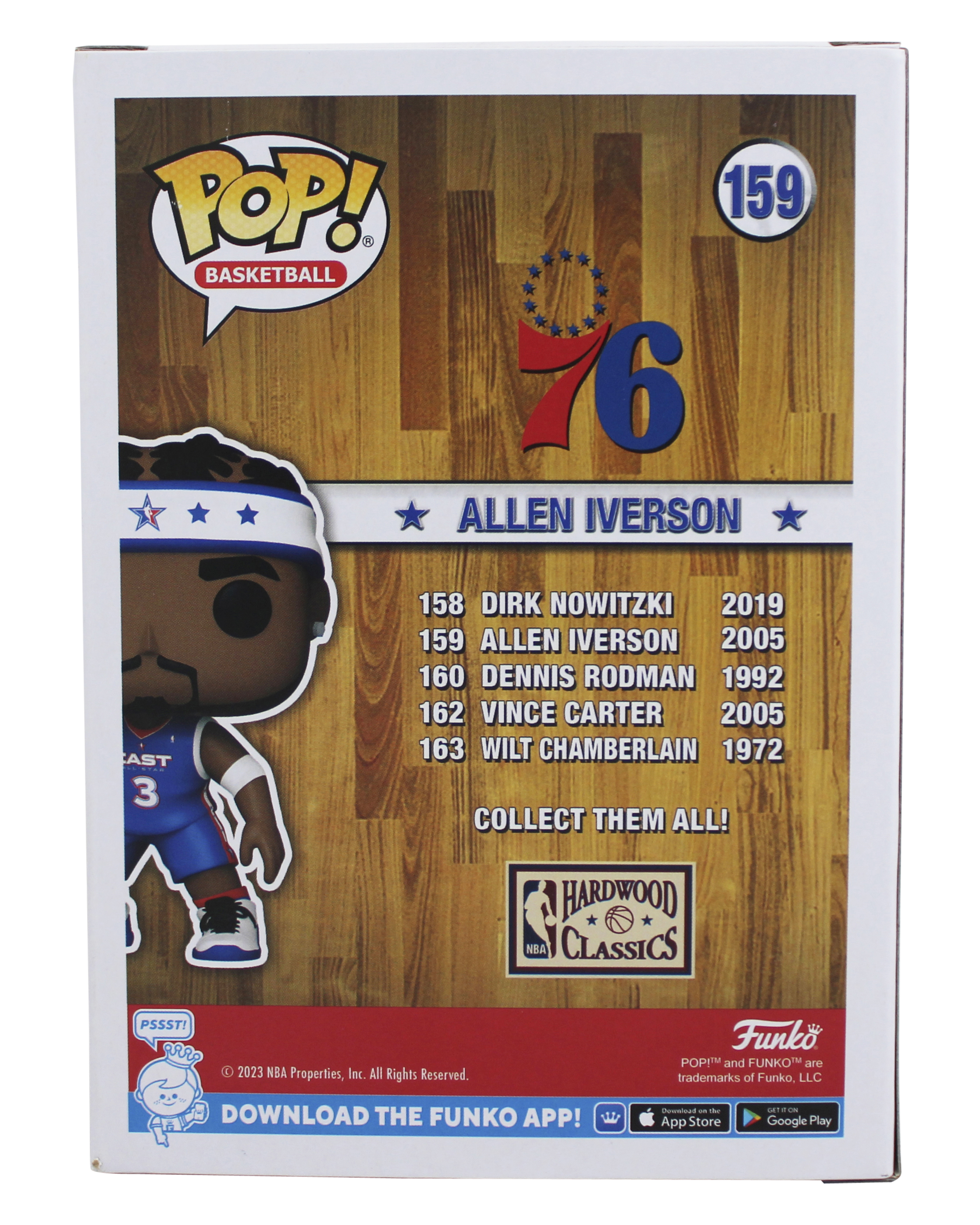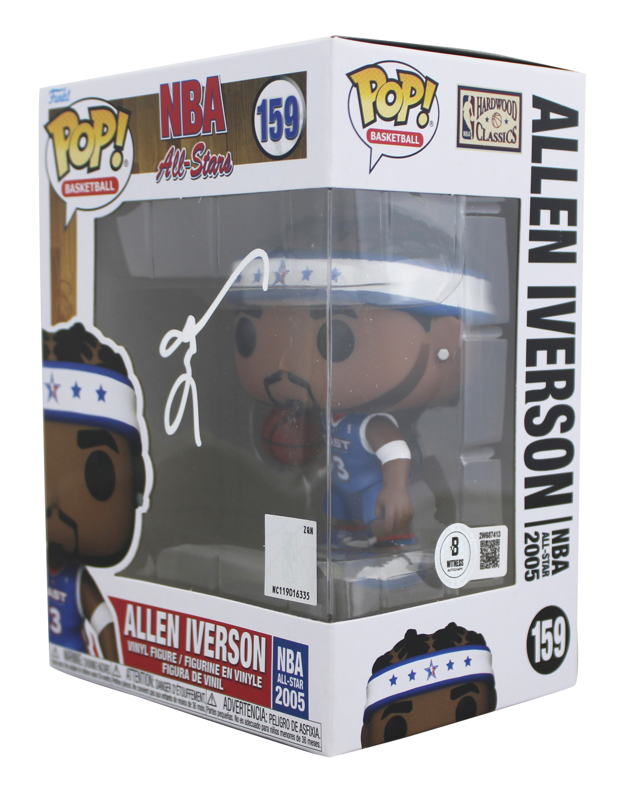This Autographed w/ White Signature NBA All-Star #159 Funko Pop Vinyl Figure has been Personally Signed by Allen Iverson of the Philadelphia 76ers. This item is 100% Authentic to include a hologram by Beckett Authentication Services. This item will come with an affixed Beckett Authentication Services (BAS) authentication sticker, which includes a scannable QR code to verify authenticity. Please note that Beckett no longer provides serial-numbered COA cards, and the attached BAS sticker will serve as the complete authentication for this item. This is a BAS Witnessed Protection Program item which means a Beckett Authentication Service representative was present when this item was being signed. We conducted an autograph signing with Allen Iverson where multiples of the same item were signed. While the photographs are representative of this item, the size, placement and strength of the signature may vary. Each item is hand signed, therefore, each autograph is unique. This item can be verified through BAS Witnessed. This item will ship in a Pop! Protector, please refer to the photos for condition of the item prior to purchase, these are in good condition but would not be considered mint.