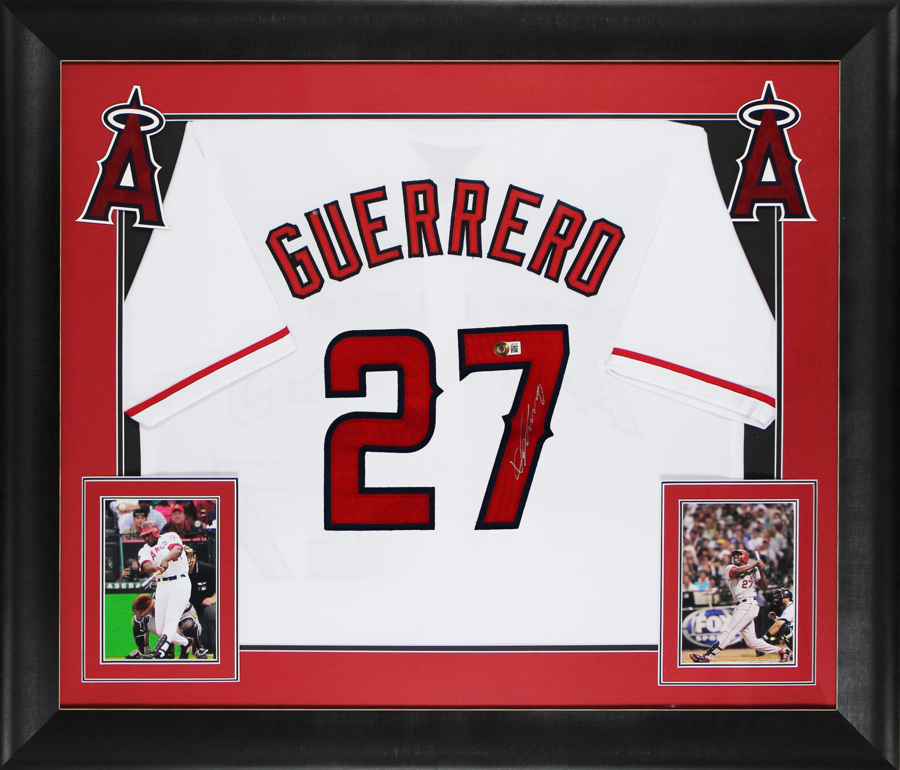 This Autographed White Pro Style Framed Jersey has been Personally Signed by Vladimir Guerrero of the Los Angeles Angels. This item is 100% Authentic to include a hologram by Beckett Authentication Services. This item will come with an affixed Beckett Authentication Services (BAS) authentication sticker, which includes a scannable QR code to verify authenticity. Please note that Beckett no longer provides serial-numbered COA cards, and the attached BAS sticker will serve as the complete authentication for this item. This is a BAS Witnessed Protection Program item which means a Beckett Authentication Service representative was present when this item was being signed. We conducted an autograph signing with Vladimir Guerrero where multiples of the same item were signed. While the photographs are representative of this item, the size, placement and strength of the signature may vary. Each item is hand signed, therefore, each autograph is unique. This item can be verified through BAS Witnessed. This item has been professionally framed to overall dimensions of approximately 32 x 37 inches. This is a X-Large sized, non-branded, custom-stitched Framed Jersey. This jersey will be framed to order, it will take approximately 3-4 business days from purchase date for it to ship.