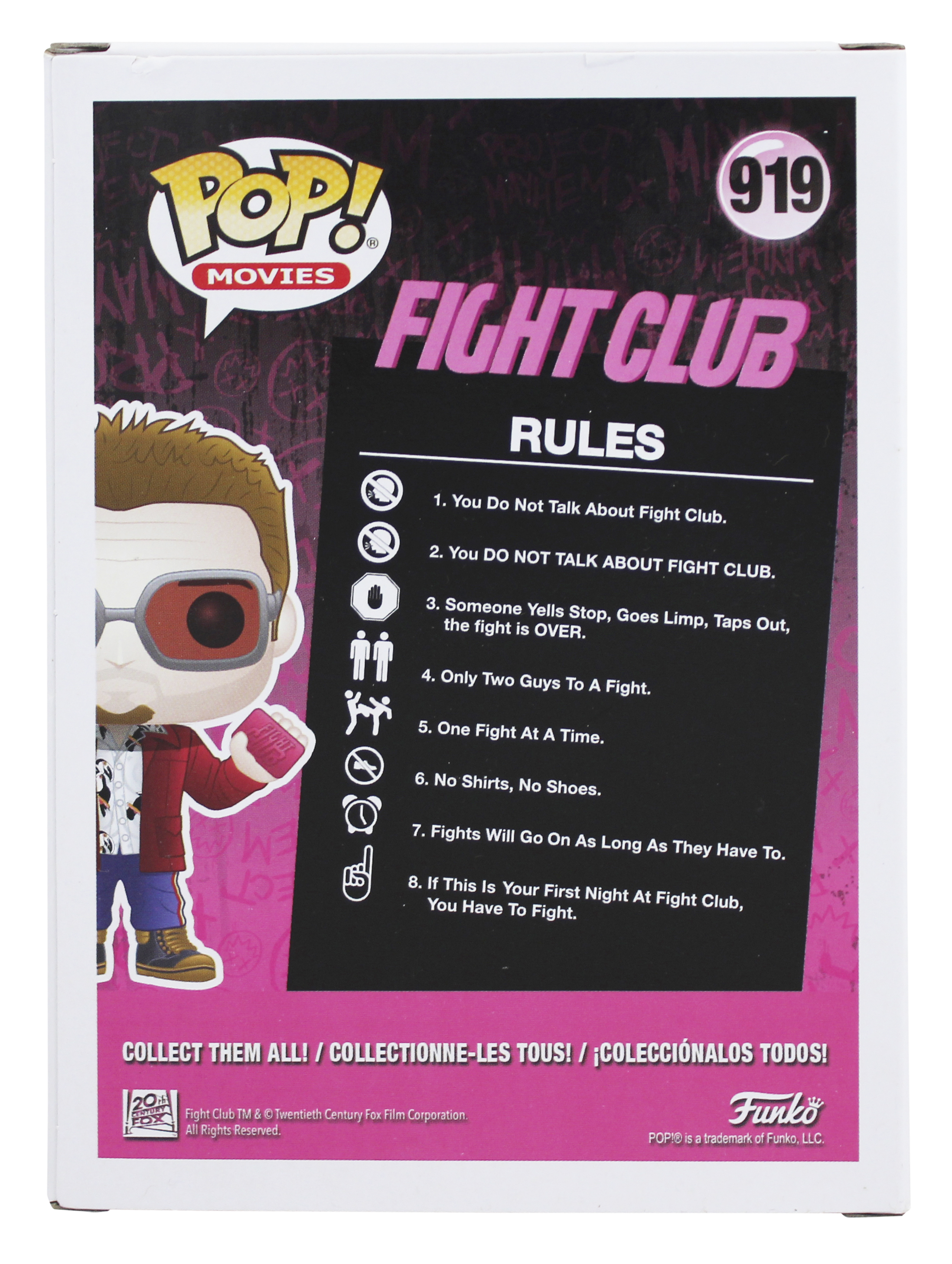 This is a #919 Fight Club Tyler Durden Funko Pop Vinyl Figure. This is not autographed. It will be shipped in a Pop Protector, please refer to photos for condition prior to purchase.