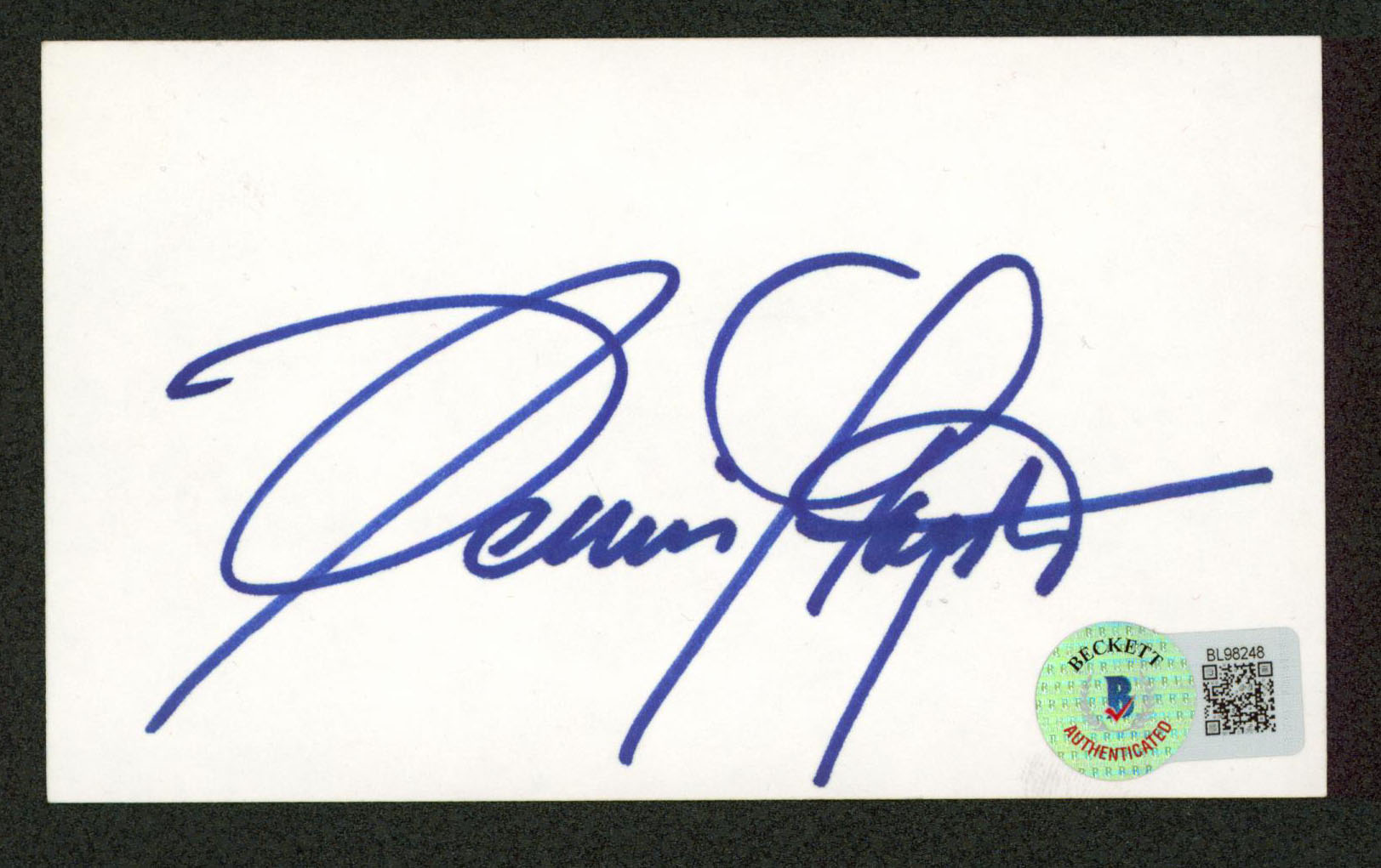 This Autographed 3x5 Index Card has been Personally Signed by Dennis Haysbert of Major League. This item is 100% Authentic to include a hologram by Beckett Authentication Services. This item will come with an affixed Beckett Authentication Services (BAS) authentication sticker, which includes a scannable QR code to verify authenticity. Please note that Beckett no longer provides serial-numbered COA cards, and the attached BAS sticker will serve as the complete authentication for this item. The authenticity can be verified on Beckett Authentication Services website.