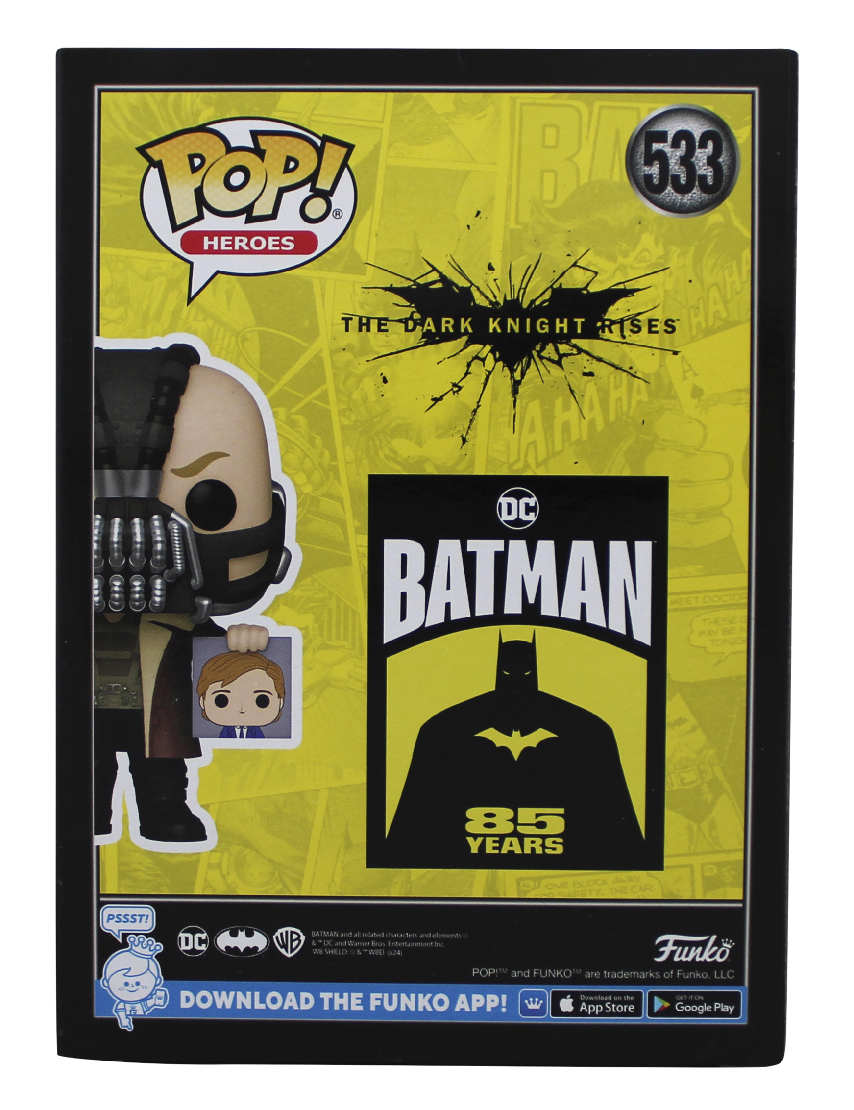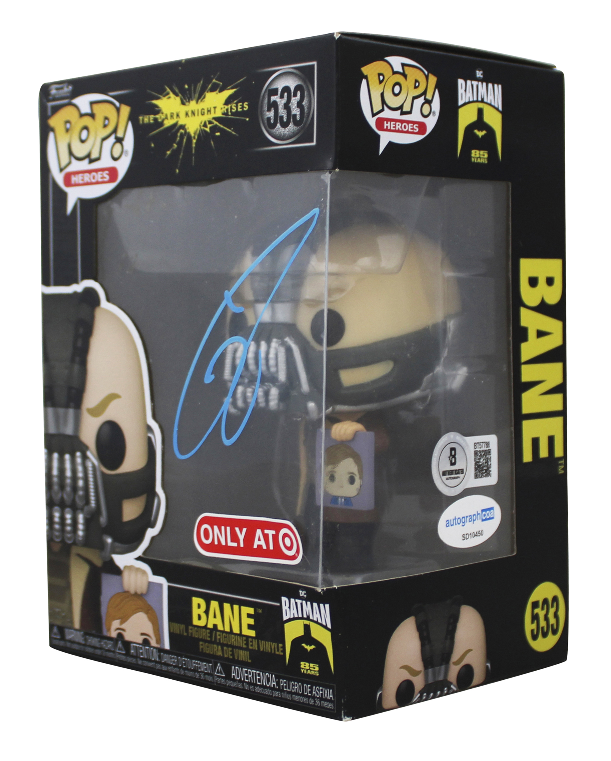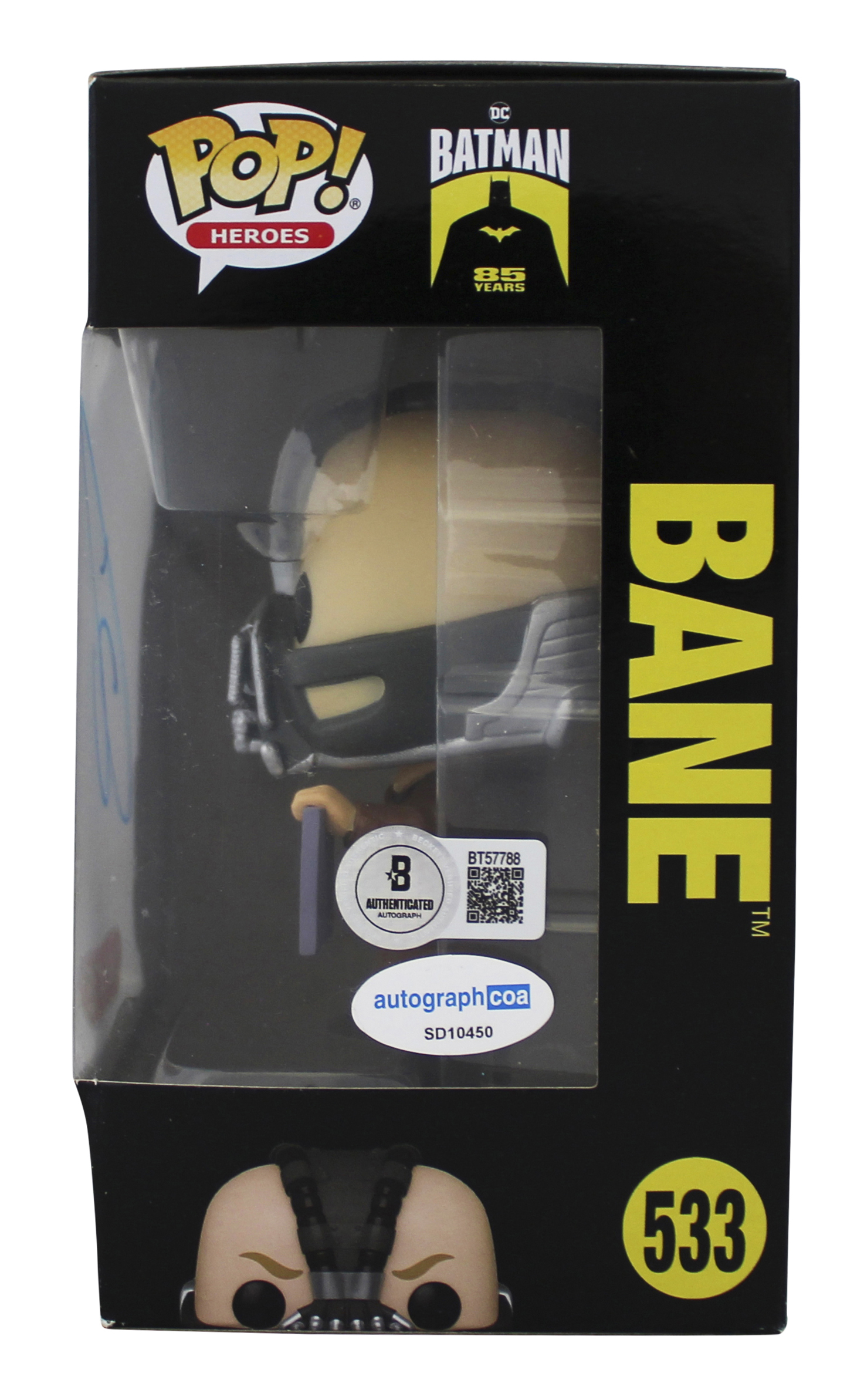 This Autographed Bane #533 Funko Pop Vinyl Figure has been Personally Signed by Tom Hardy of Batman The Dark Knight Rises. This item is 100% Authentic to include a hologram by Beckett Authentication Services. This item will come with an affixed Beckett Authentication Services (BAS) authentication sticker, which includes a scannable QR code to verify authenticity. Please note that Beckett no longer provides serial-numbered COA cards, and the attached BAS sticker will serve as the complete authentication for this item. The authenticity can be verified on Beckett Authentication Services website. This will be shipped in a Pop Protector. This Funko will have some handling wear from shipment to the signing and back. Please refer to pictures for item's condition prior to purchase.