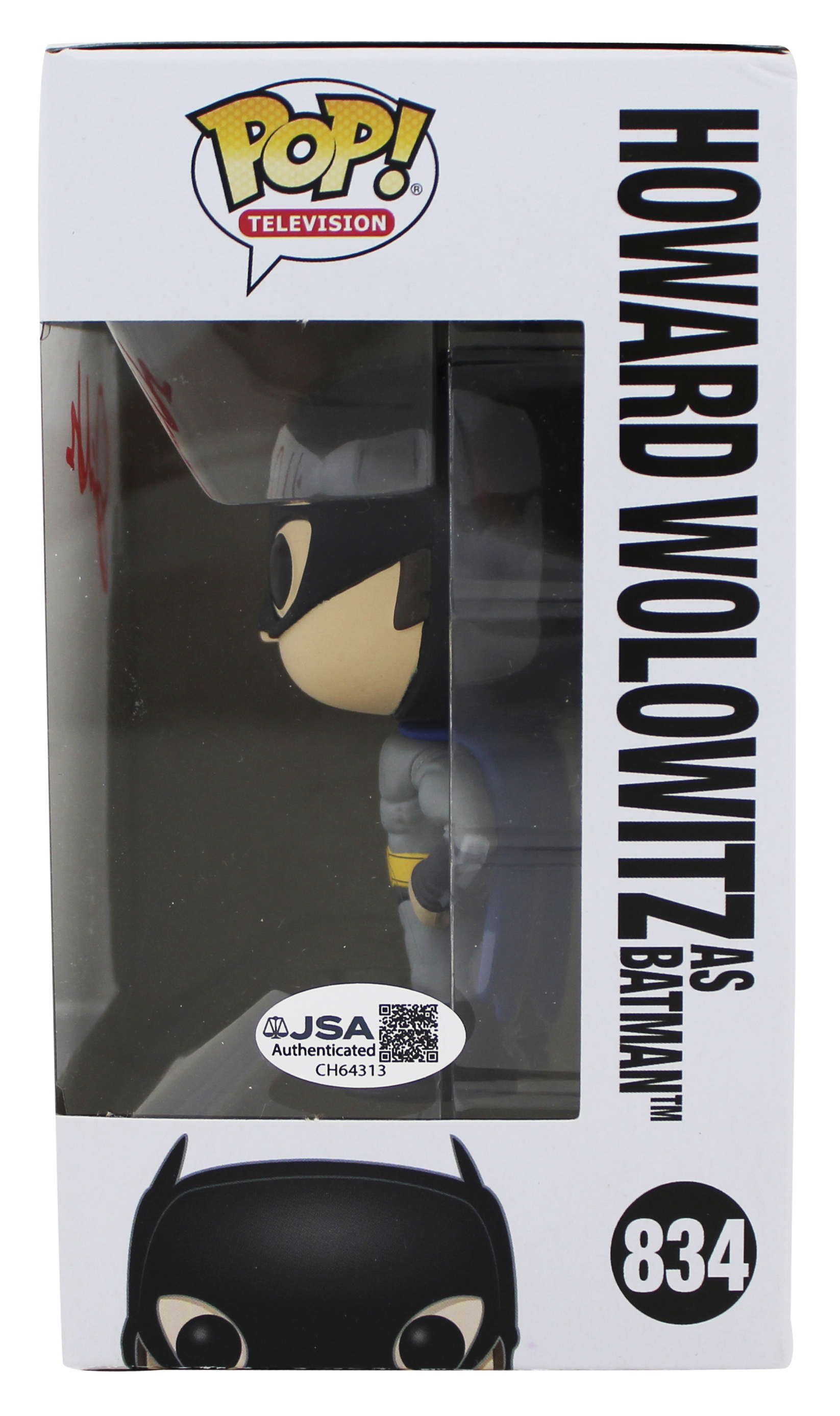 This Autographed Howard Wolowitz as Batman #834 Funko Pop Vinyl Figure has been Personally Signed by Simon Helberg of The Big Bang Theory. This item is 100% Authentic to include a Certificate of Authenticity (COA) / hologram by JSA. The authenticity can be verified on JSA website. This will be shipped in a Pop Protector. This Funko will have some handling wear from shipment to the signing and back. There is a crease on the back panel of this Funko. Please refer to photos for item's condition prior to purchase.
