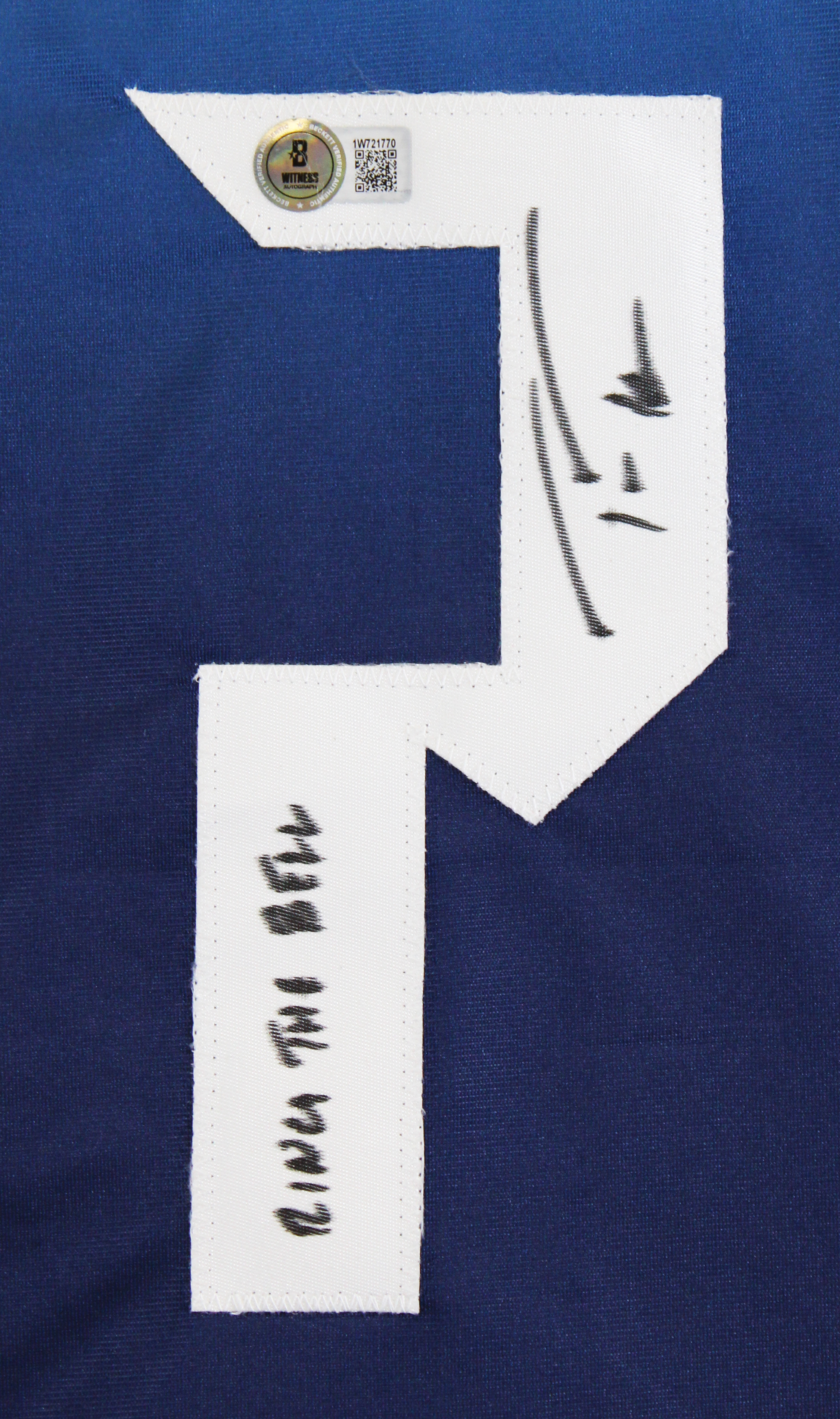 This Autographed Light Blue Pro Style Jersey with the inscription of "Ring the Bell" has been Personally Signed by Trea Turner of the Philladelphia Phillies. This item is 100% Authentic to include a hologram by Beckett Authentication Services. This item will come with an affixed Beckett Authentication Services (BAS) authentication sticker, which includes a scannable QR code to verify authenticity. Please note that Beckett no longer provides serial-numbered COA cards, and the attached BAS sticker will serve as the complete authentication for this item. This is a BAS Witnessed Protection Program item which means a Beckett Authentication Service representative was present when this item was being signed. We conducted an autograph signing with Trea Turner where multiples of the same item were signed. While the photographs are representative of this item, the size, placement and strength of the signature may vary. Each item is hand signed, therefore, each autograph is unique. This item can be verified through BAS Witnessed. This is a X-Large sized, non-branded, custom-stitched Jersey.