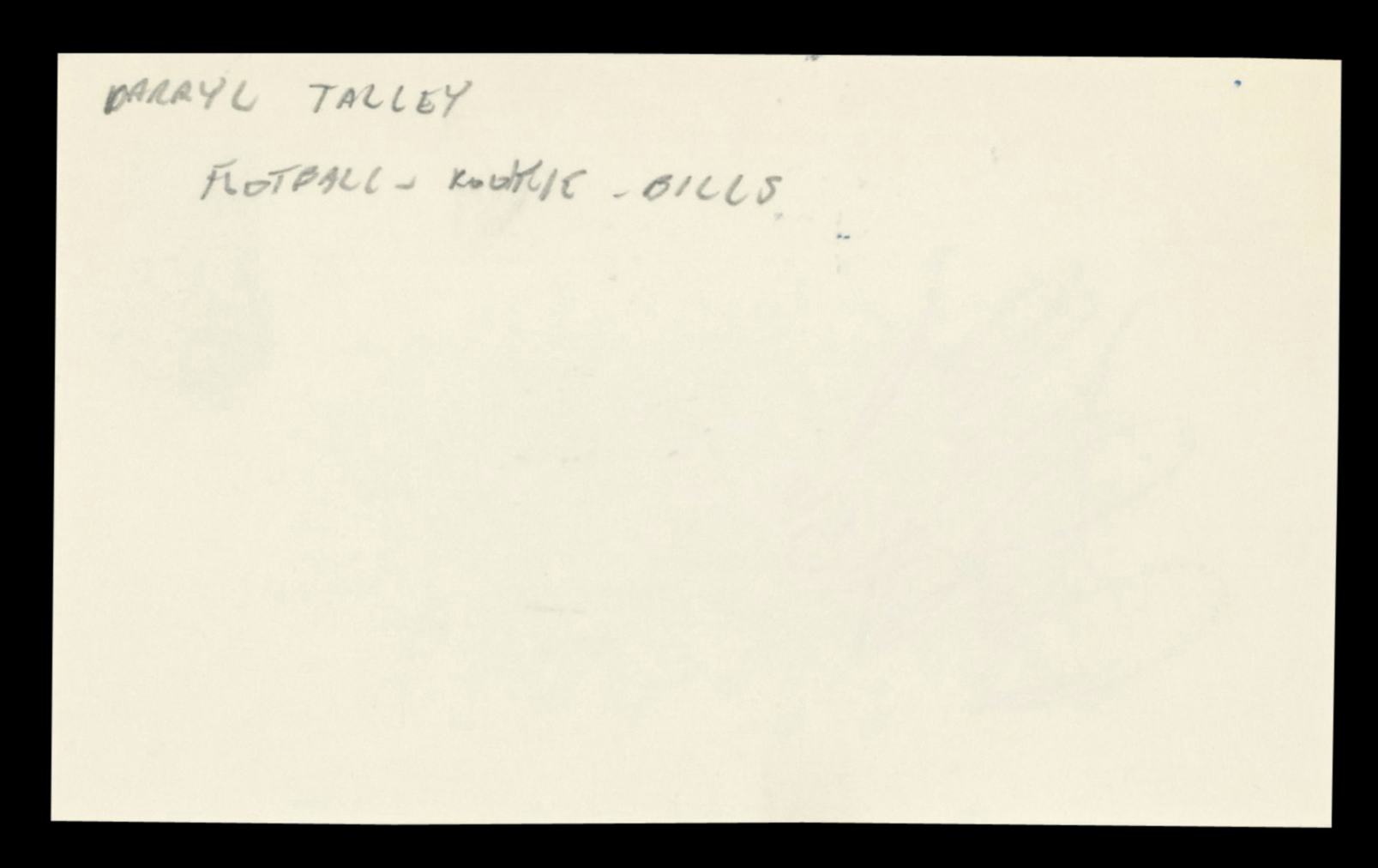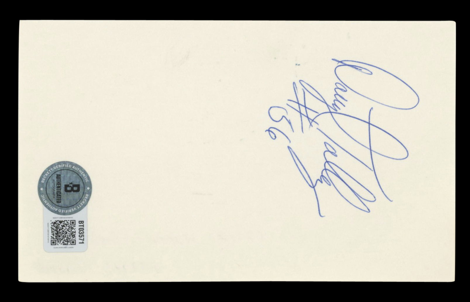 This Autographed 3x5 Index Card with the inscription of "#56" has been Personally Signed by Darryl Talley of the Buffalo Bills. This item is 100% Authentic to include a hologram by Beckett Authentication Services. This item will come with an affixed Beckett Authentication Services (BAS) authentication sticker, which includes a scannable QR code to verify authenticity. Please note that Beckett no longer provides serial-numbered COA cards, and the attached BAS sticker will serve as the complete authentication for this item. The authenticity can be verified on Beckett Authentication Services website.