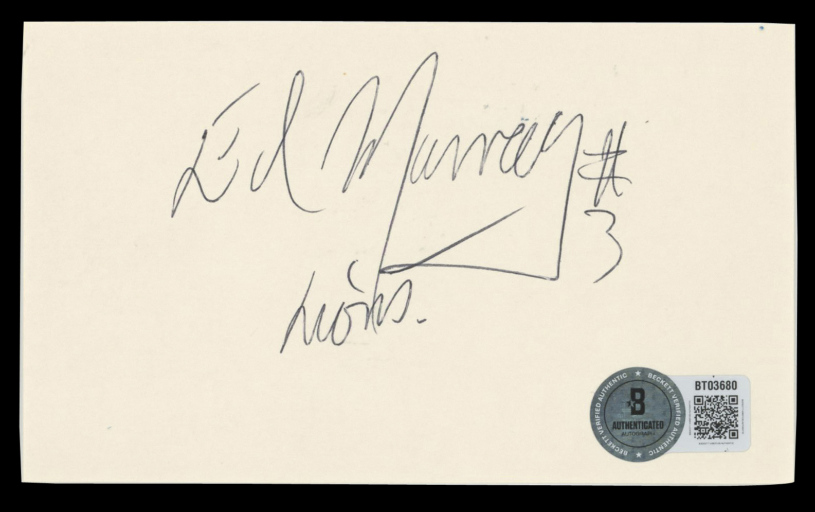 This Autographed 3x5 Index Card with the inscription of "Lions, #3" has been Personally Signed by Eddie Murray of the Detroit Lions. This item is 100% Authentic to include a hologram by Beckett Authentication Services. This item will come with an affixed Beckett Authentication Services (BAS) authentication sticker, which includes a scannable QR code to verify authenticity. Please note that Beckett no longer provides serial-numbered COA cards, and the attached BAS sticker will serve as the complete authentication for this item. The authenticity can be verified on Beckett Authentication Services website.