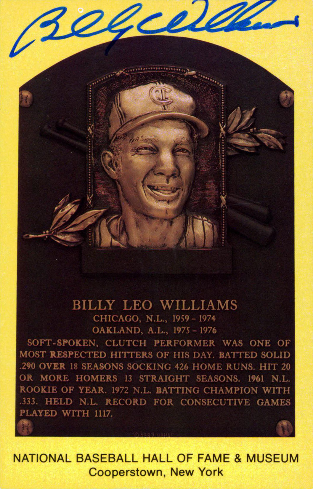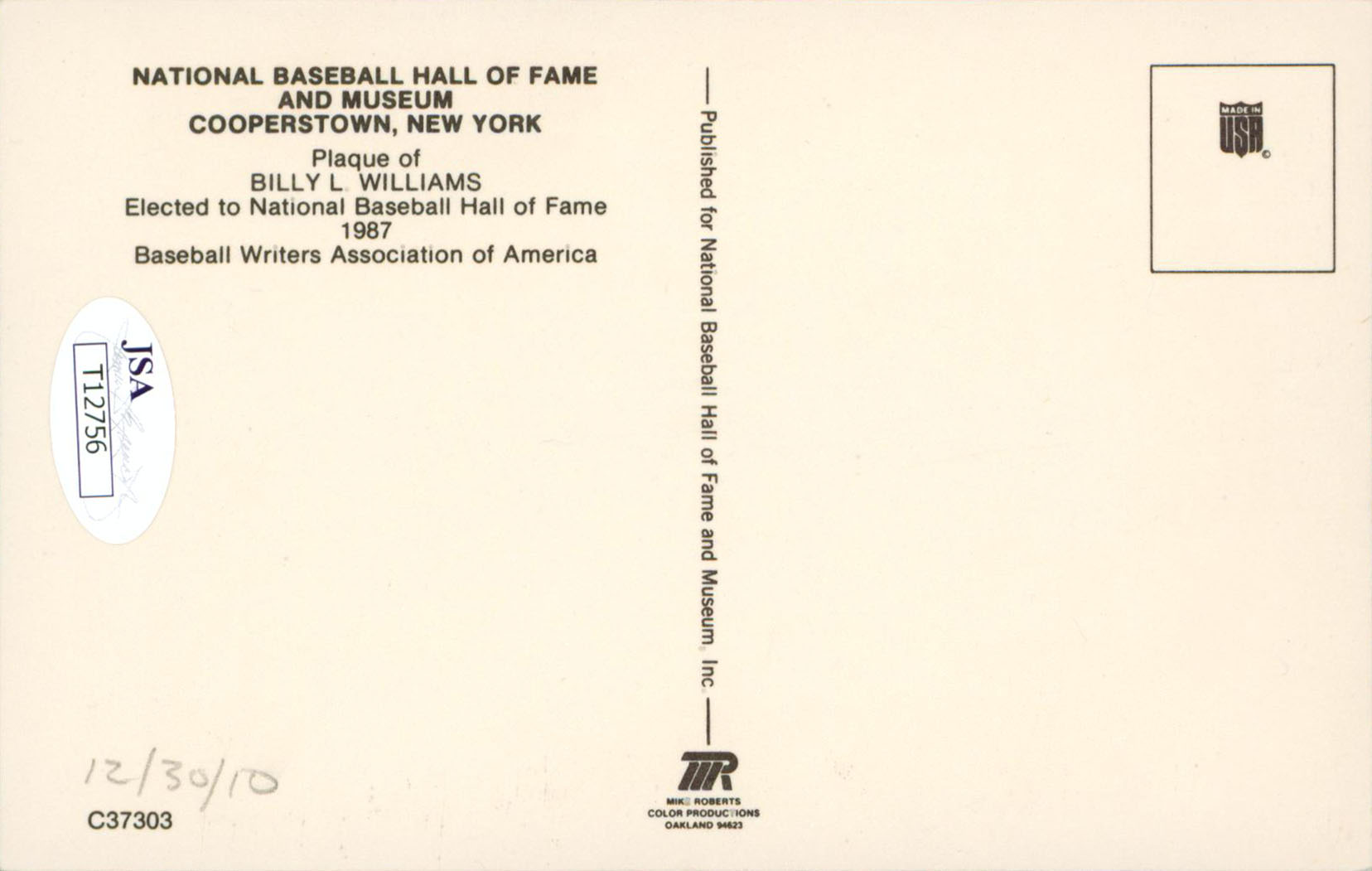 This Autographed HOF Plaque 3.5x5.5 Postcard has been Personally Signed by Billy Williams of the Chicago Cubs. This item is 100% Authentic to include a Certificate of Authenticity (COA) / hologram by JSA. The authenticity can be verified on JSA website.