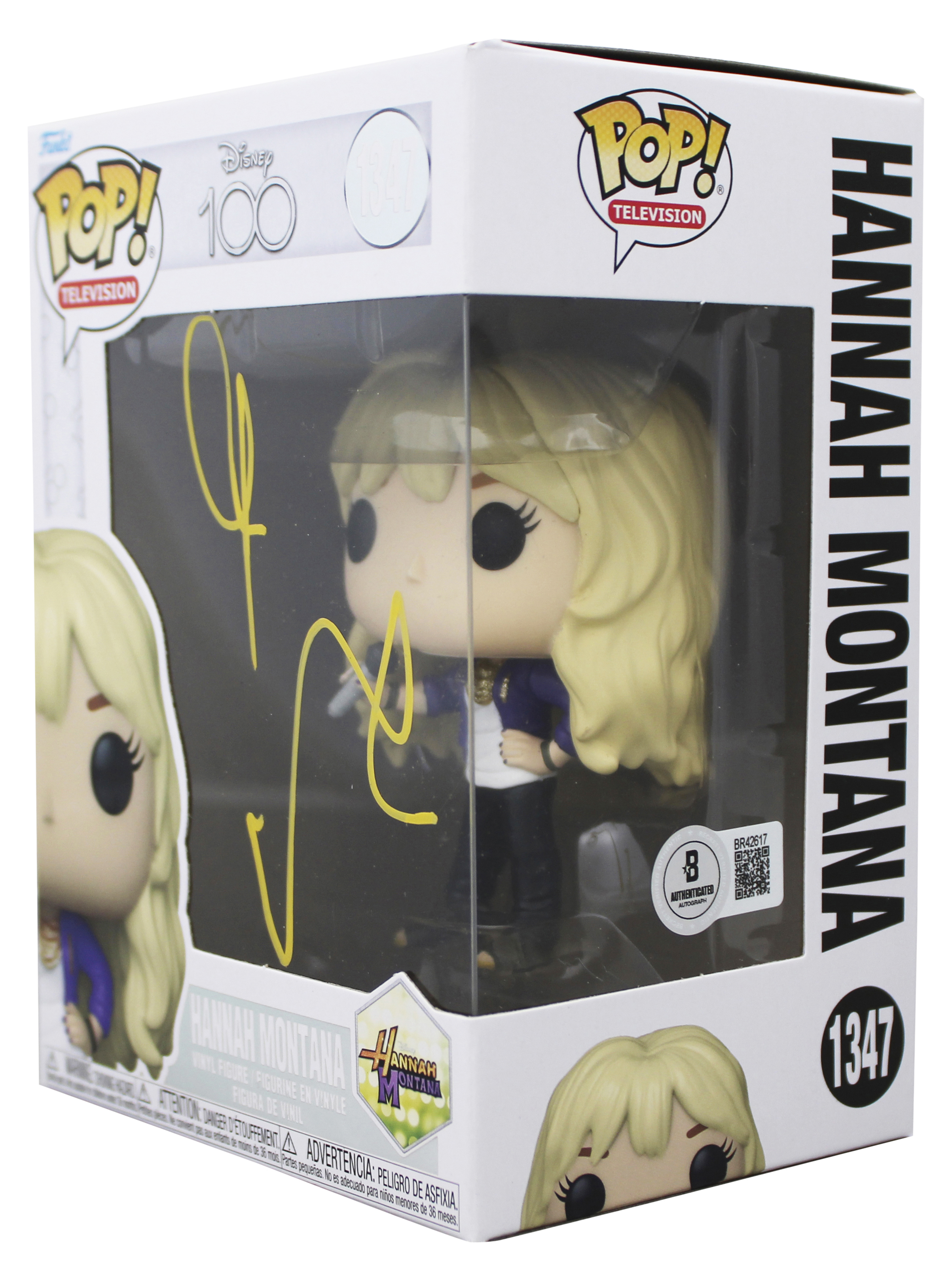 This Autographed Disney 100 Hannah Montana #1347 Funko Pop Vinyl Figure has been Personally Signed by Miley Cyrus of Hannah Montana. This item is 100% Authentic to include a hologram by Beckett Authentication Services. This item will come with an affixed Beckett Authentication Services (BAS) authentication sticker, which includes a scannable QR code to verify authenticity. Please note that Beckett no longer provides serial-numbered COA cards, and the attached BAS sticker will serve as the complete authentication for this item. The authenticity can be verified on Beckett Authentication Services website. This will be shipped in a Pop Protector, each will have some handling wear from shipment to the signing and back. These would not be considered mint. Please refer to pictures for item's condition prior to purchase.