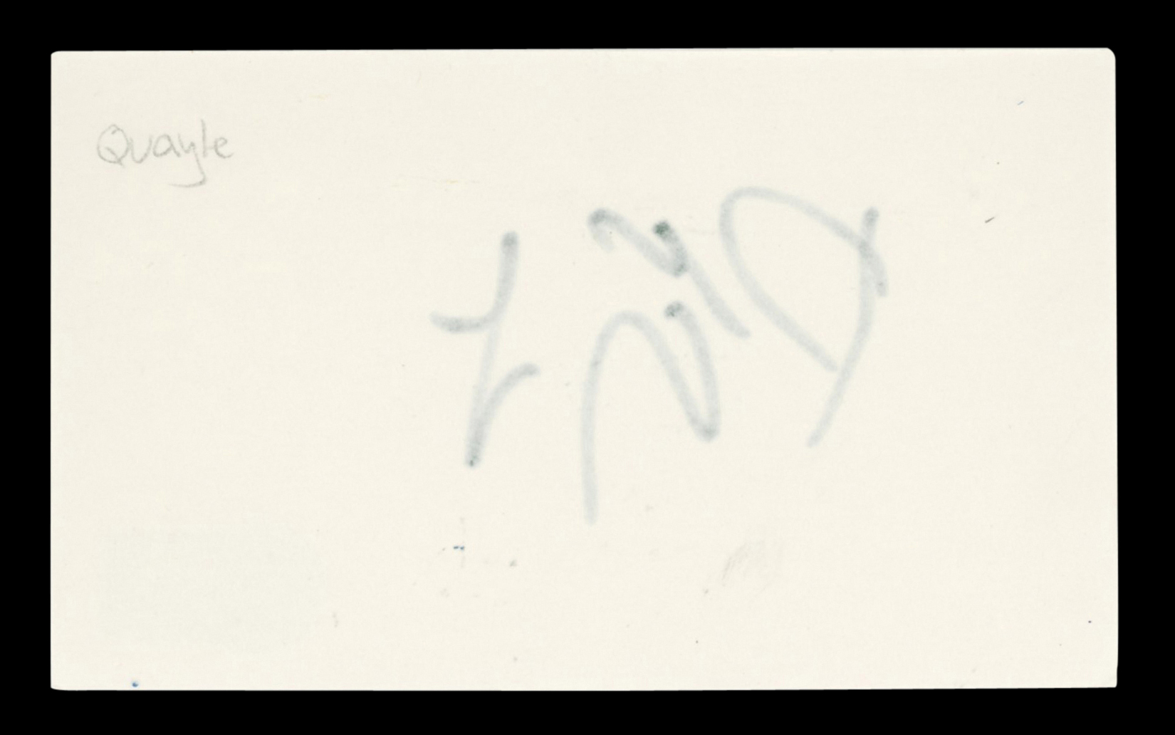 This Autographed 3x5 Index Card has been Personally Signed by Dan Quayle. This item is 100% Authentic to include a hologram by Beckett Authentication Services. This item will come with an affixed Beckett Authentication Services (BAS) authentication sticker, which includes a scannable QR code to verify authenticity. Please note that Beckett no longer provides serial-numbered COA cards, and the attached BAS sticker will serve as the complete authentication for this item. The authenticity can be verified on Beckett Authentication Services website.
