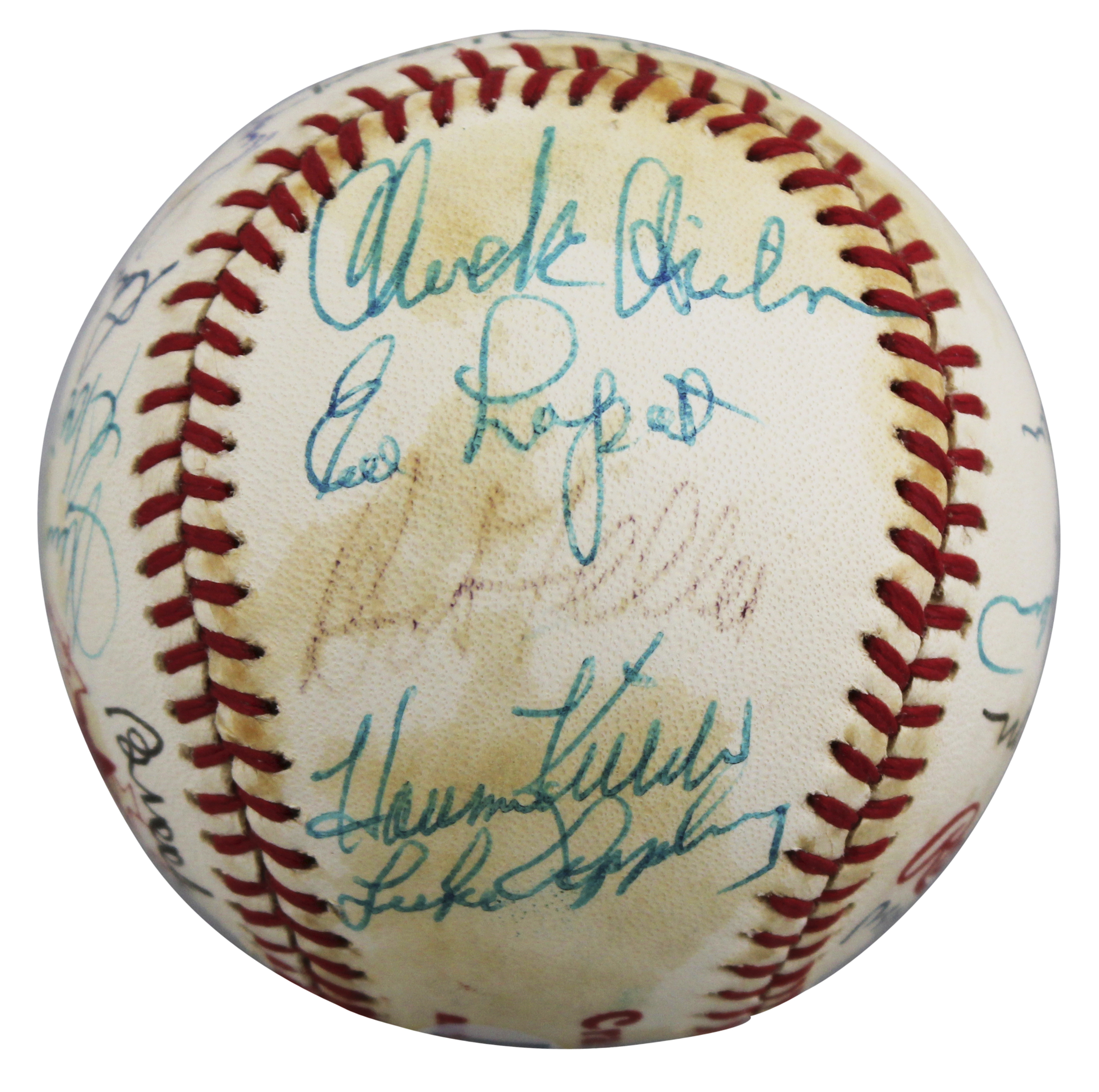 This Autographed Baseball has been Personally Signed by Roger Maris, Brooks Robinson, Early Wynn, Bobby Doerr, Al Kaline, Larry Doby, Harmon Killebrew, Luke Appling, Bob Feller, Ed Lopat, Chuck Hinton, Mel Parnell, Claude Osteen, Paul Blair, Hoot Evers, Bill Rigney & 3 others. This item is 100% Authentic to include a Certificate of Authenticity (COA) / hologram by Beckett Authentication Services. The authenticity can be verified on Beckett Authentication Services website.
