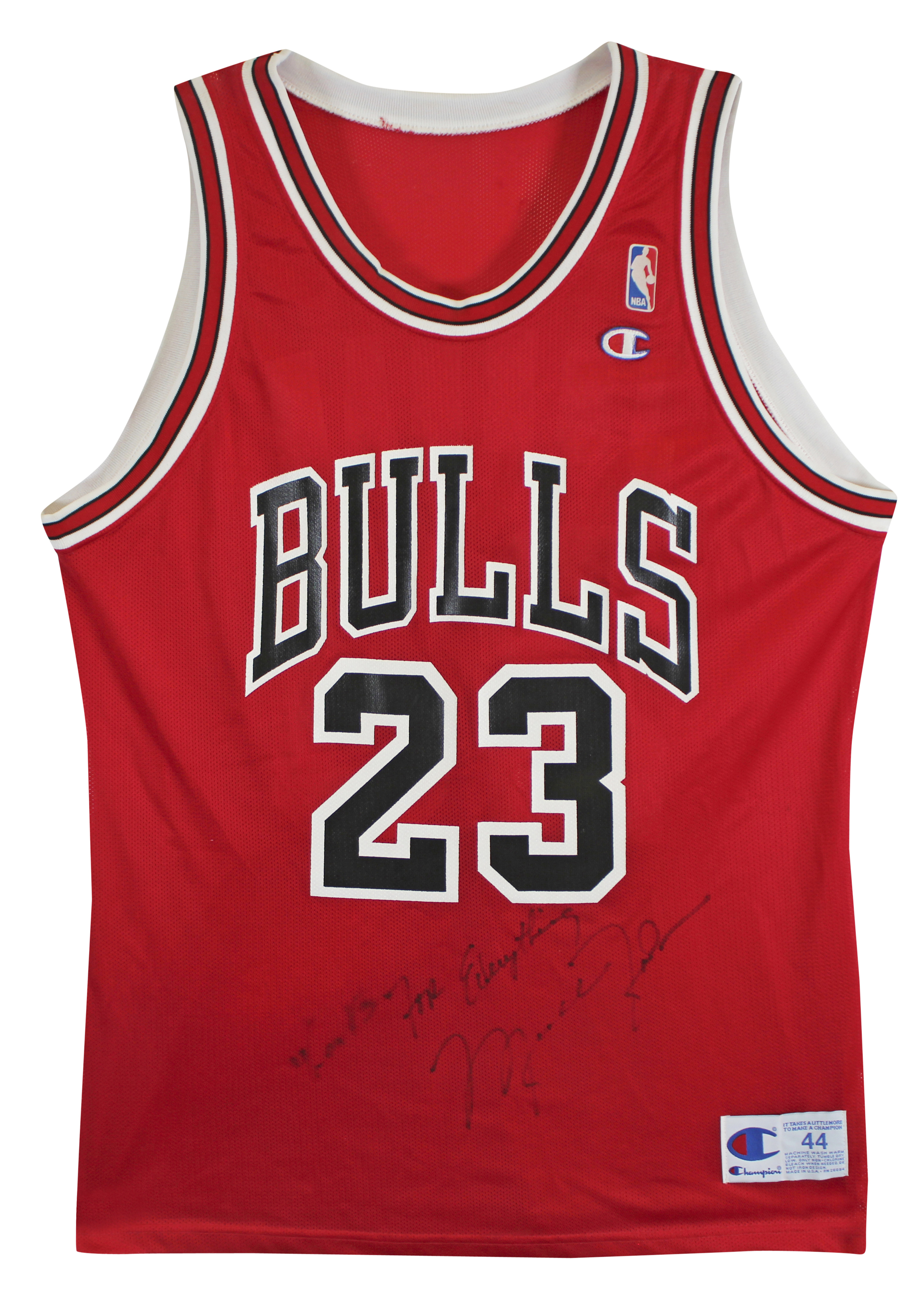 Bulls Michael Jordan "Thanks For Everything" Signed Red Champion Jersey BAS LOA