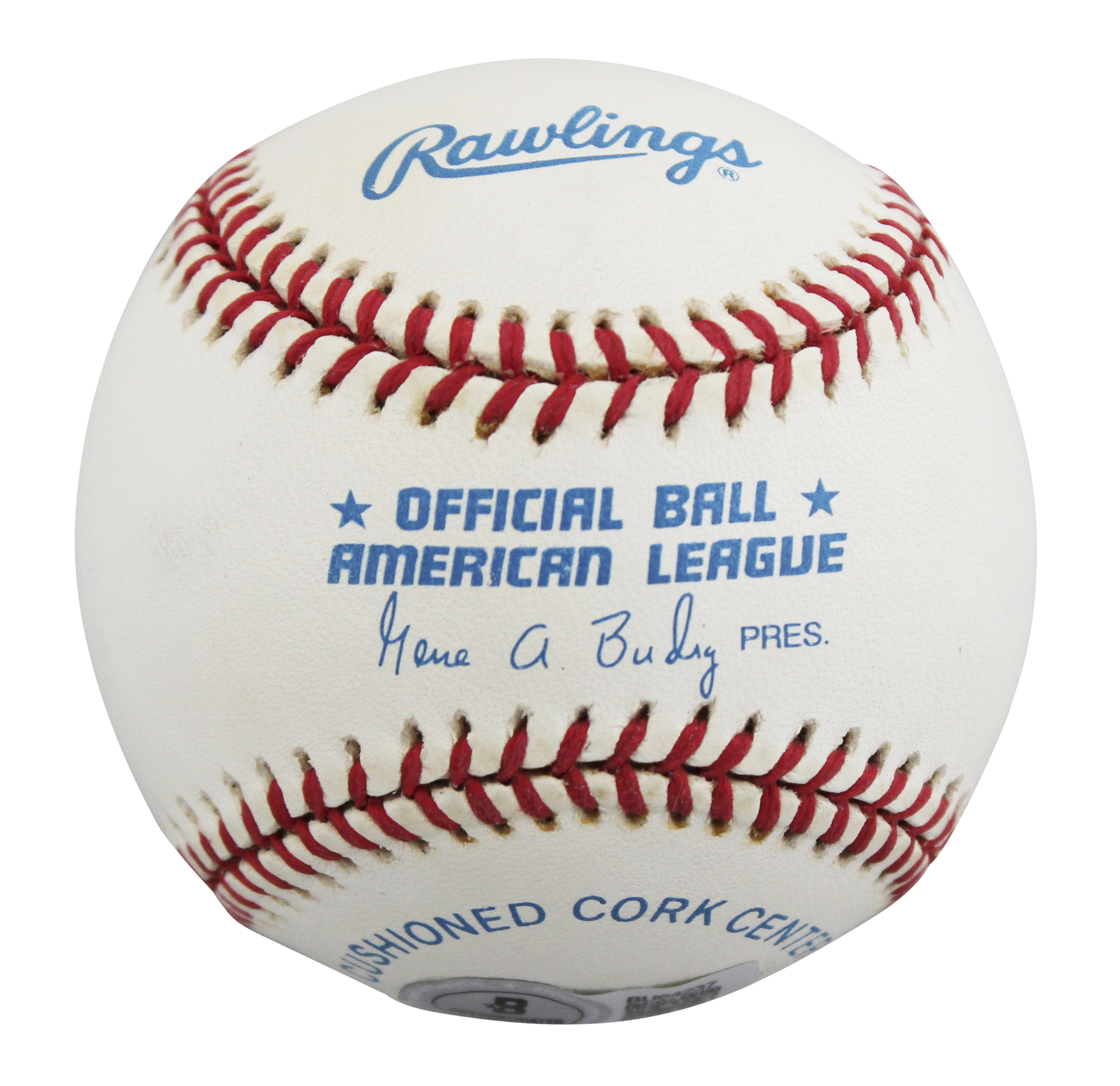 This Autographed Rawlings Official American League Baseball Gene Budig Baseball has been Personally Signed by George Brett of the Kansas City Royals. This item is 100% Authentic to include a hologram by Beckett Authentication Services. This item will come with an affixed Beckett Authentication Services (BAS) authentication sticker, which includes a scannable QR code to verify authenticity. Please note that Beckett no longer provides serial-numbered COA cards, and the attached BAS sticker will serve as the complete authentication for this item. The authenticity can be verified on Beckett Authentication Services website.