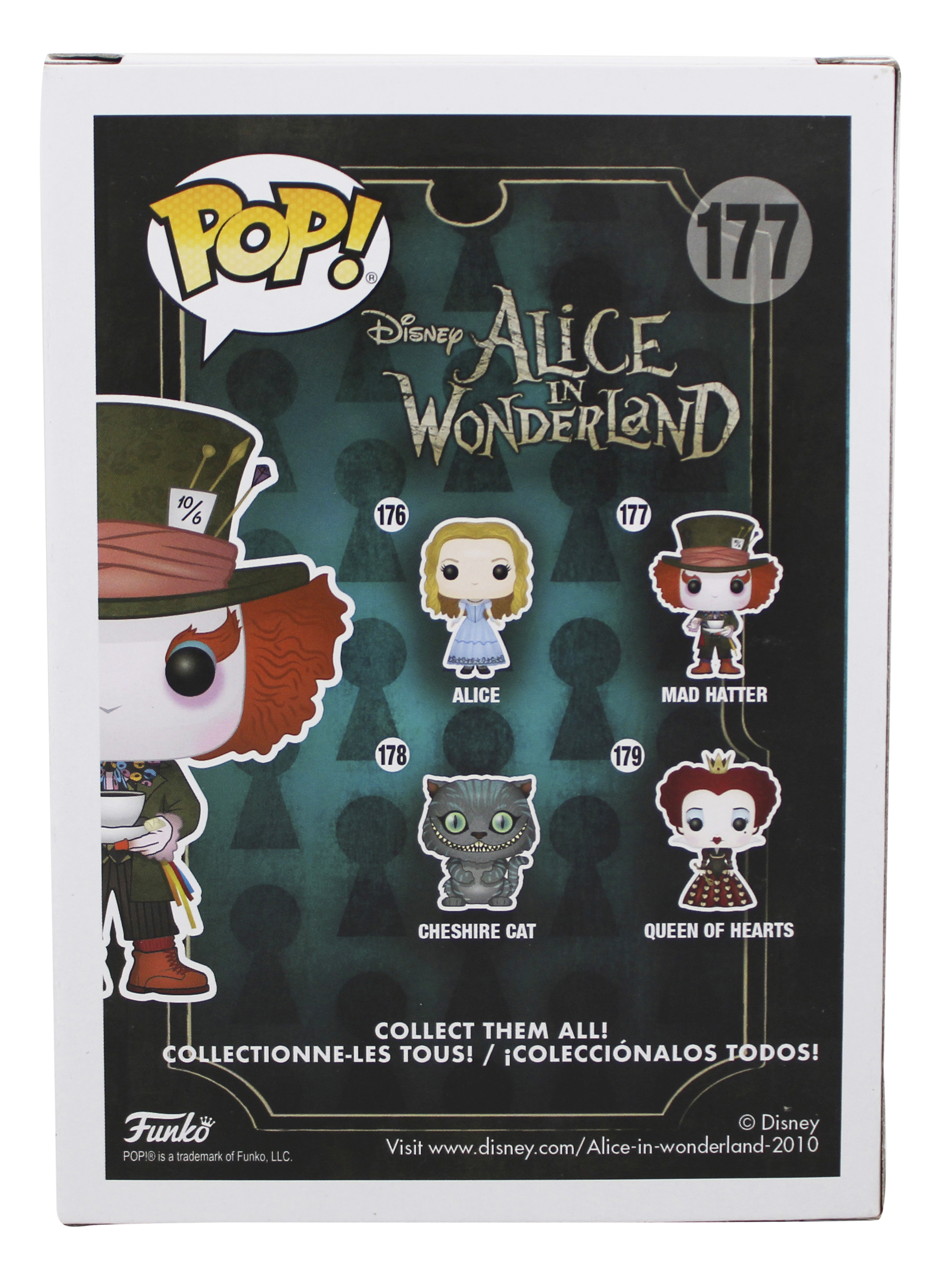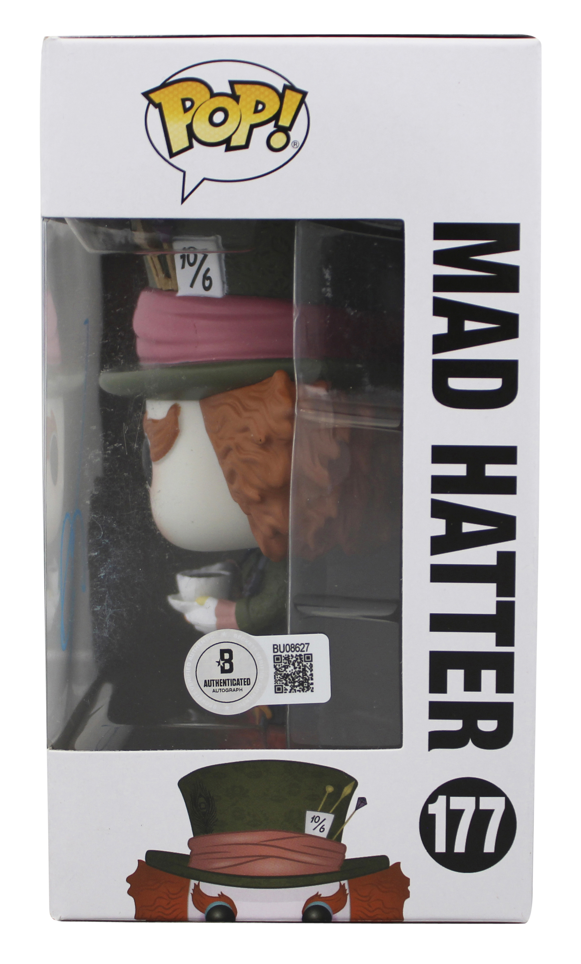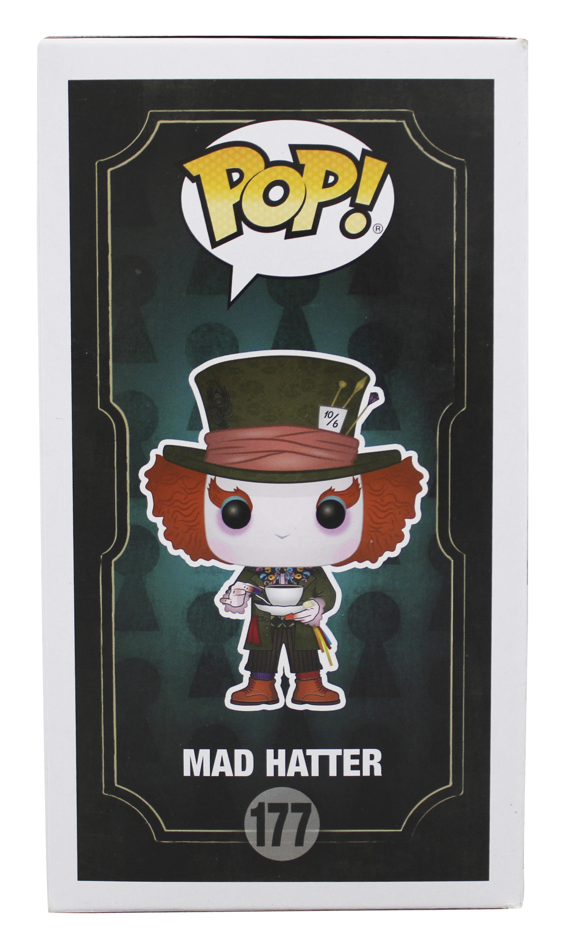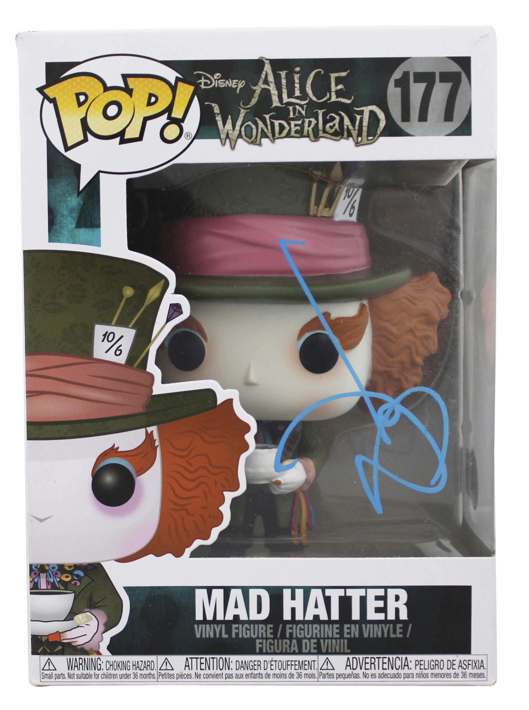 This Autographed Mad Hatter #177 Funko Pop Vinyl Figure has been Personally Signed by Johnny Depp of Alice in Wonderland. This item is 100% Authentic to include a hologram by Beckett Authentication Services. This item will come with an affixed Beckett Authentication Services (BAS) authentication sticker, which includes a scannable QR code to verify authenticity. Please note that Beckett no longer provides serial-numbered COA cards, and the attached BAS sticker will serve as the complete authentication for this item. The authenticity can be verified on Beckett Authentication Services website. This will be shipped in a Pop Protector, each will have some handling wear from shipment to the signing and back. These would not be considered mint. There is also some light clouding on the plastic windows. Please refer to photos for item's condition prior to purchase.