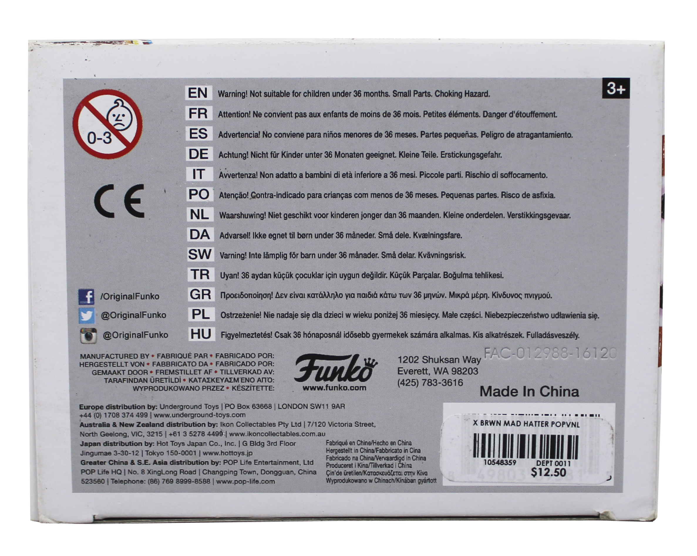 This Autographed Mad Hatter #204 Funko Pop Vinyl Figure has been Personally Signed by Johnny Depp of Alice in Wonderland. This item is 100% Authentic to include a hologram by Beckett Authentication Services. This item will come with an affixed Beckett Authentication Services (BAS) authentication sticker, which includes a scannable QR code to verify authenticity. Please note that Beckett no longer provides serial-numbered COA cards, and the attached BAS sticker will serve as the complete authentication for this item. The authenticity can be verified on Beckett Authentication Services website. This will be shipped in a Pop Protector, each will have some handling wear from shipment to the signing and back. These would not be considered mint. The front panel of this Funko has some damage and creasing. There is also some light clouding on the plastic windows as well. Please refer to photos for item's condition prior to purchase.