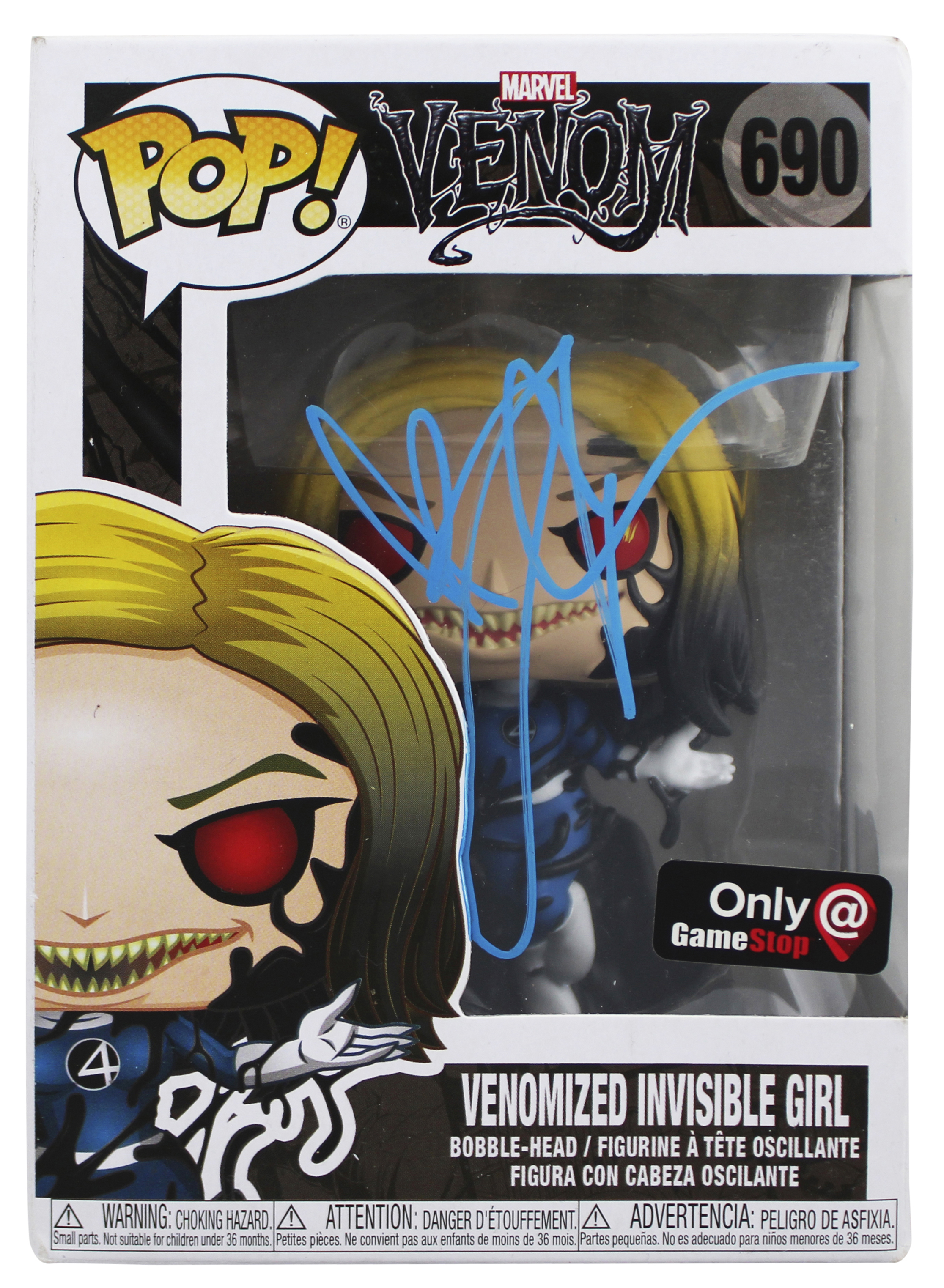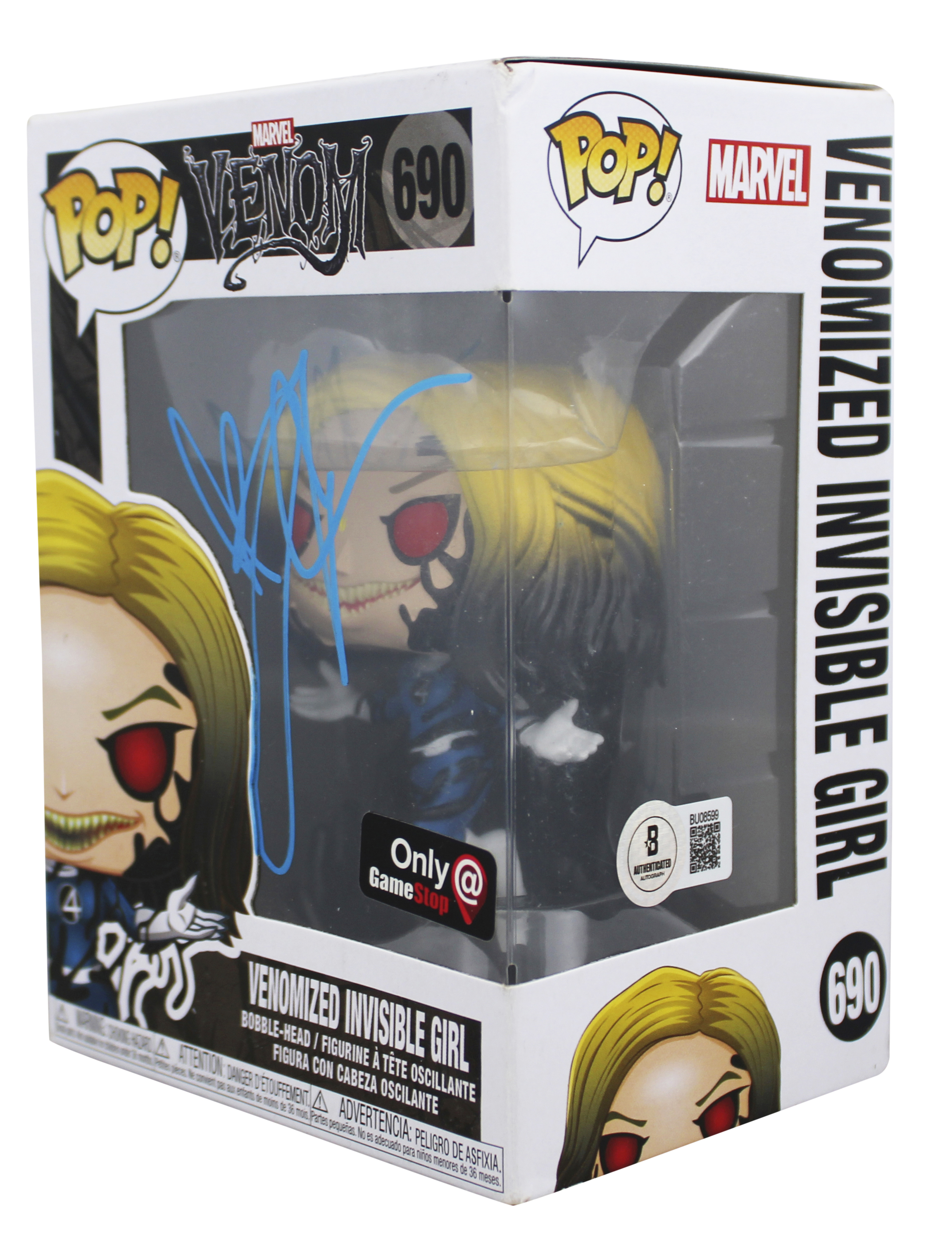This Autographed Venomized Invisible Girl #690 Funko Pop Vinyl Figure has been Personally Signed by Jessica Alba of Venom. This item is 100% Authentic to include a hologram by Beckett Authentication Services. This item will come with an affixed Beckett Authentication Services (BAS) authentication sticker, which includes a scannable QR code to verify authenticity. Please note that Beckett no longer provides serial-numbered COA cards, and the attached BAS sticker will serve as the complete authentication for this item. The authenticity can be verified on Beckett Authentication Services website. This will be shipped in a Pop Protector, each will have some handling wear from shipment and signing. These would not be considered mint. Please refer to photos for item's condition prior to purchase.