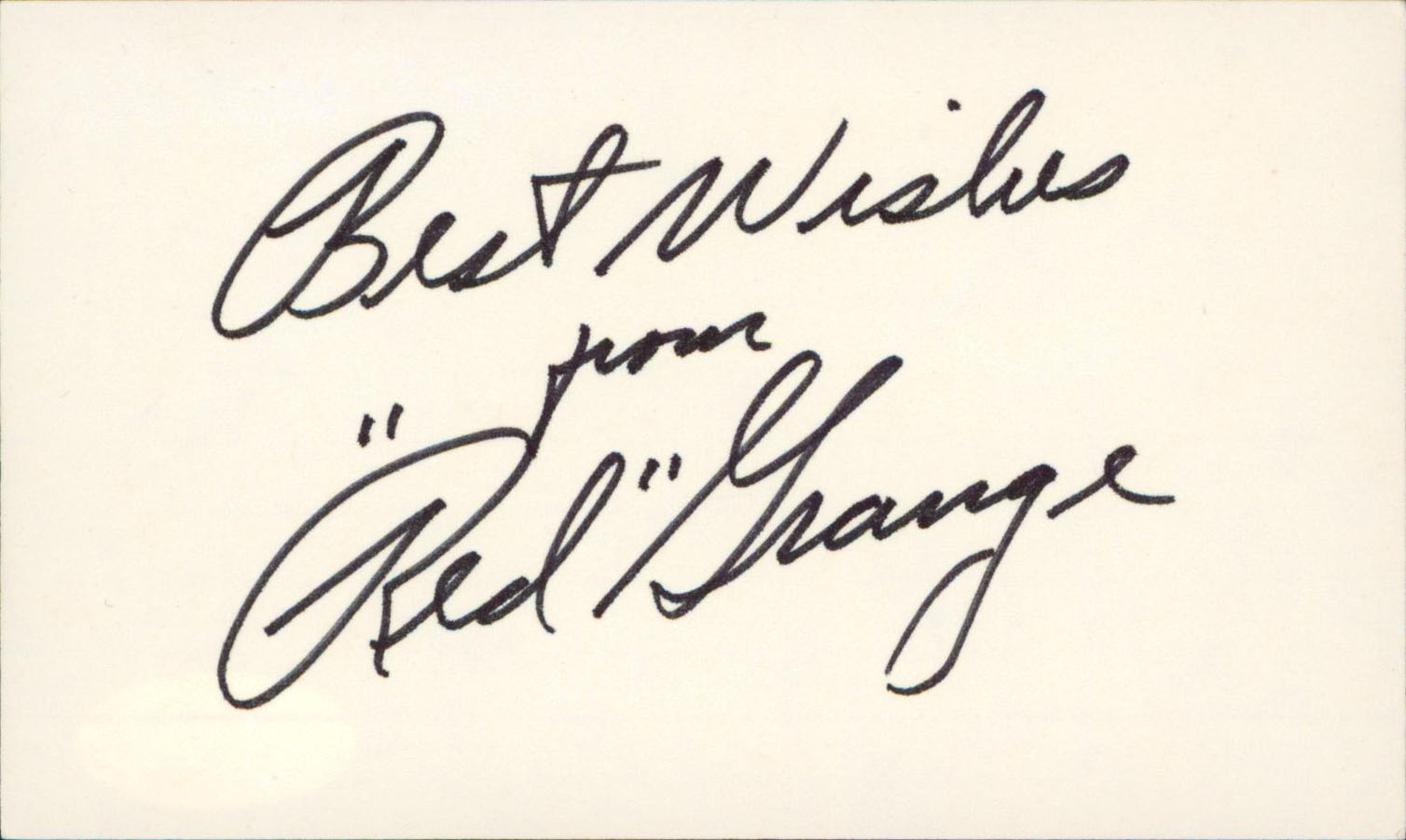 This Autographed 3x5 Index Card with the inscription of "Best Wishes" has been Personally Signed by Red Grange of the Chicago Bears. This item is 100% Authentic to include a Certificate of Authenticity (COA) / hologram by JSA. The authenticity can be verified on JSA website.